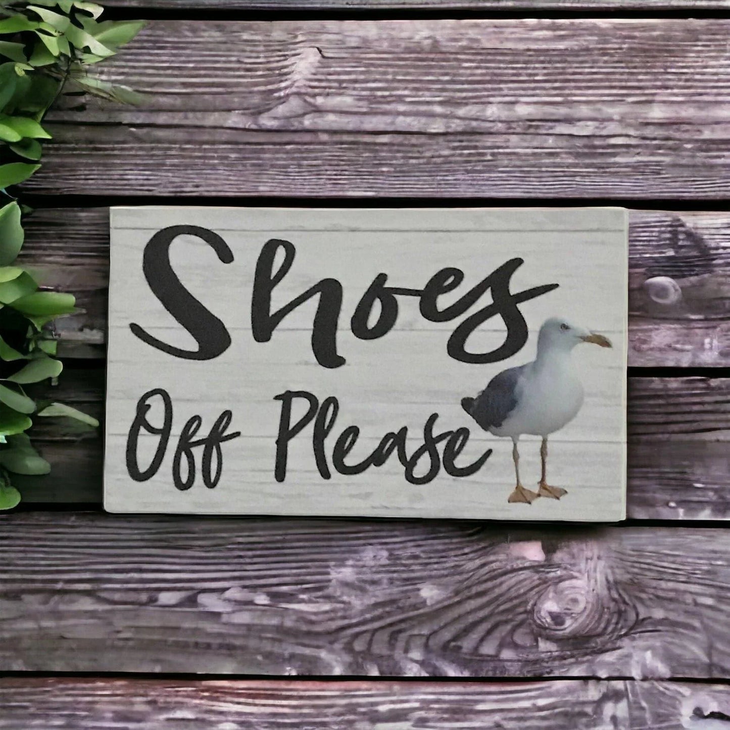 Embrace the coastal lifestyle with our Shoes Off Please Coastal Seagull Sign, perfect for any indoor or outdoor space. Show your love for the beach with this versatile sign, whether it's hung on a wall, door, or displayed on a shelf. Let all your guests know the rule in style!