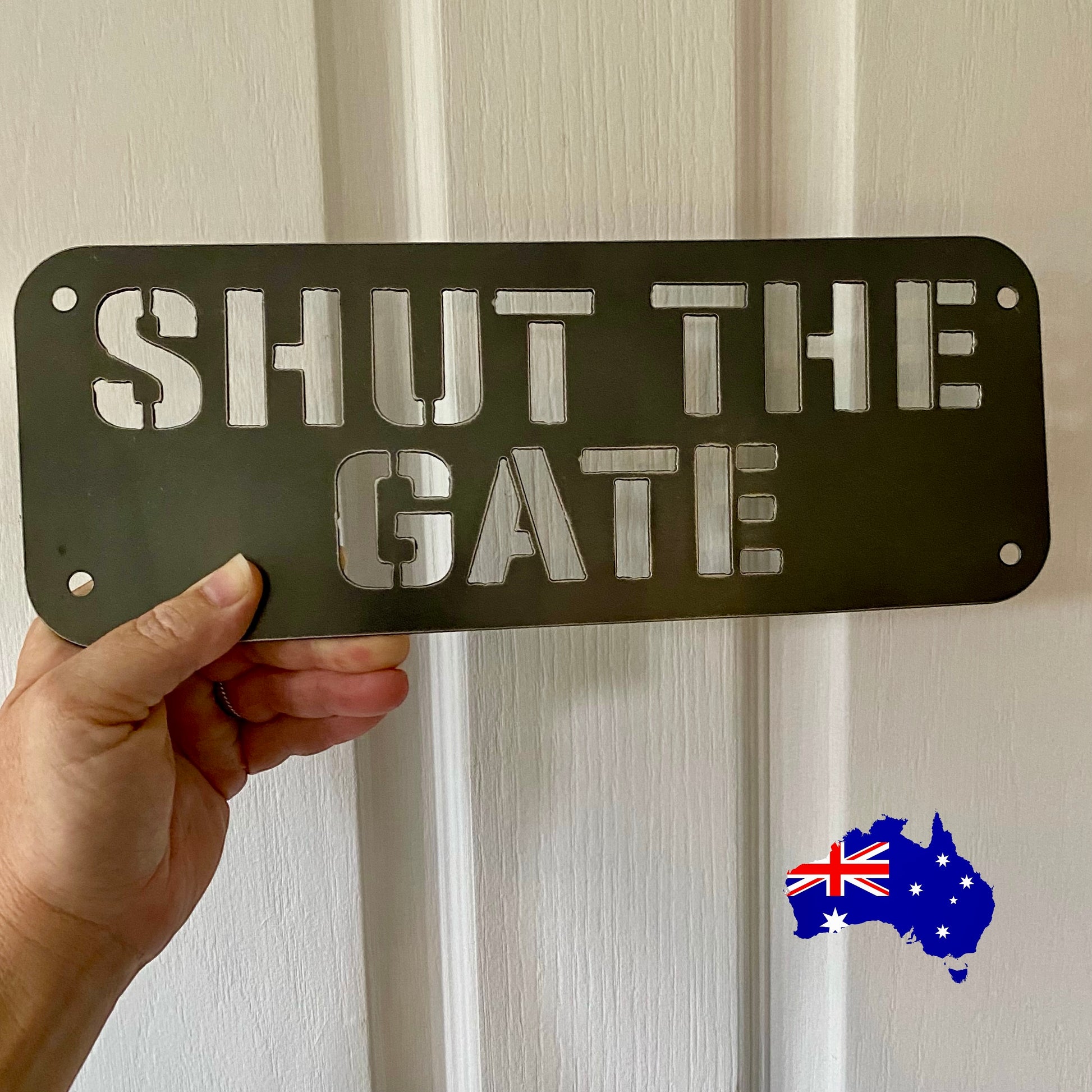 Shut The Gate Steel Cor10 Steel Rusty Metal Sign
