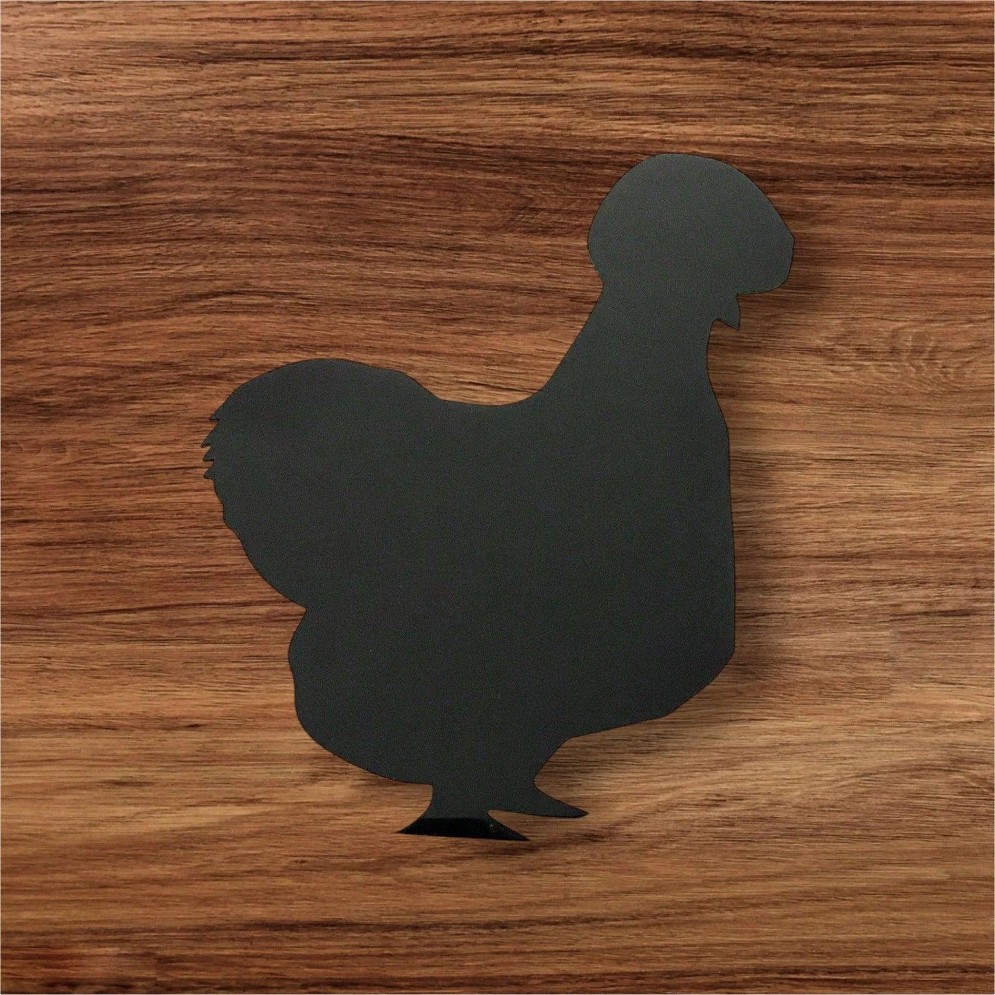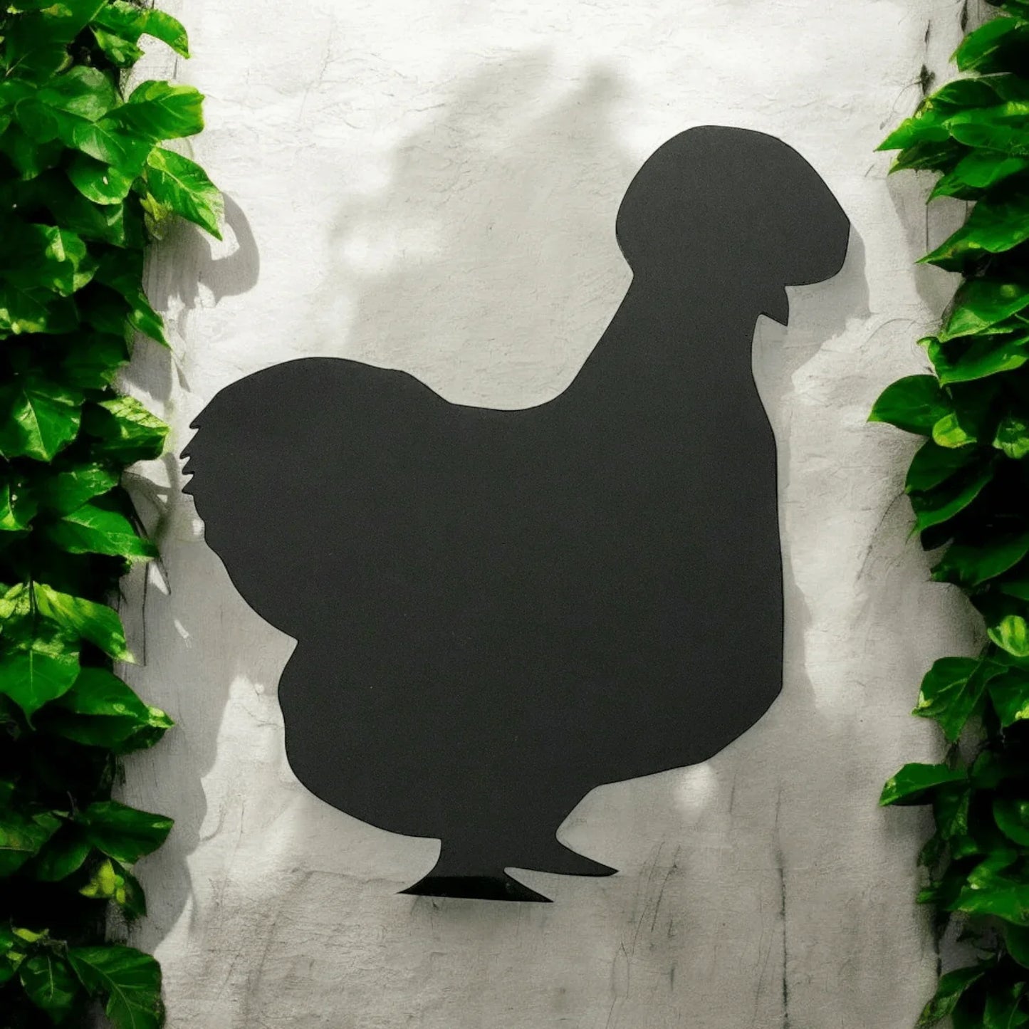 This laser cut out is handcrafted and designed in Australia by an enthusiast of the Silkie Chicken breed! Available in Black gloss, ideal for both indoor and outdoor display. Adorn your wall or chicken coop with this unique piece to showcase your passion for Silkie Chickens in style.