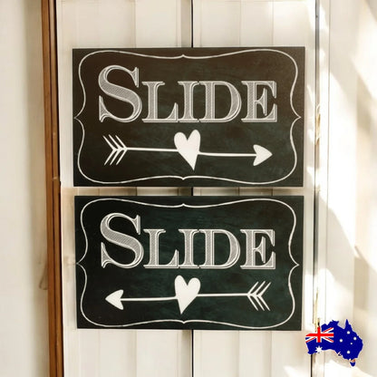 Looking for a sign that directs visitors to slide the door open? Look no further! Our Slide Door Sliding Vintage Arrow Sign is perfect for both indoor and outdoor use. Display it on your sliding door or wall and let guests and visitors know exactly what to do.