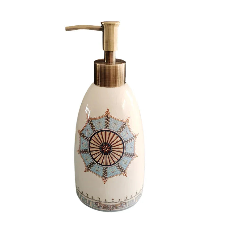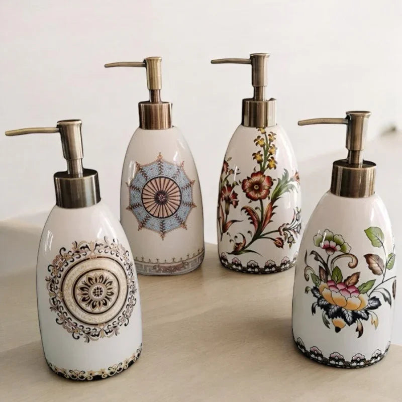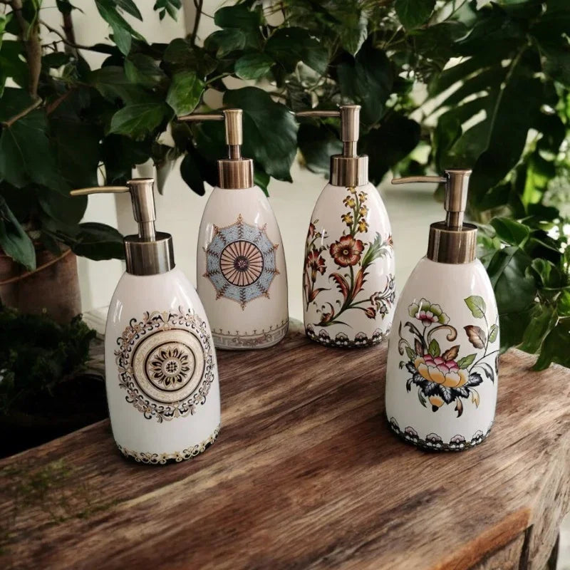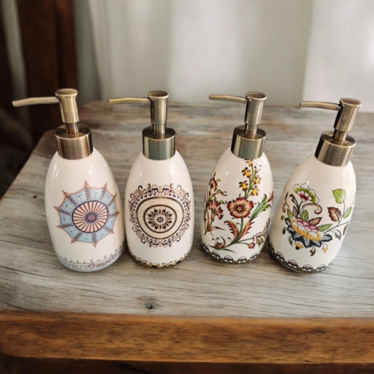 Elevate your bathroom, laundry, kitchen, or garden with our Soap Dispenser Ceramic Floral Boho Mandala. With four charming designs to choose from, you can add a touch of style to any space. Perfect for keeping those hands clean, this dispenser is a must-have for any bohemian or farmhouse-themed decor!