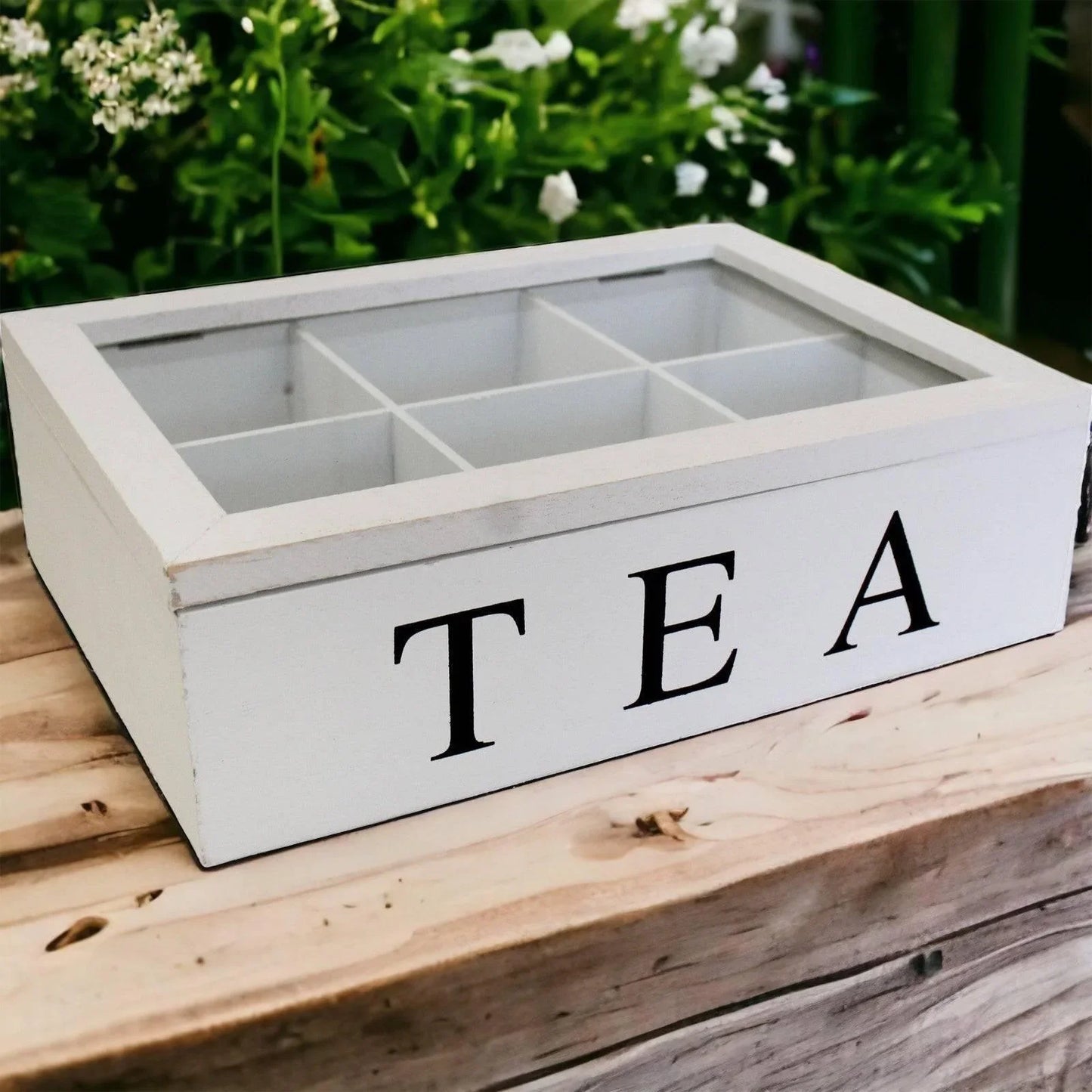 This classic white tea box is a must have for any Tea Lover perfect for keeping all your beautiful tea ranges neat and tidy this box is the solution to a messy kitchen cupboard or use as a wonderful display on any surface. The Tea Storage box is made from MDF suitable for any Shabby Chic, French Provincial, Country, Farmhouse to Hampton's Coastal Beach House Style Kitchen home décor. Approximate Size is 14cm x 1cm x 7cm