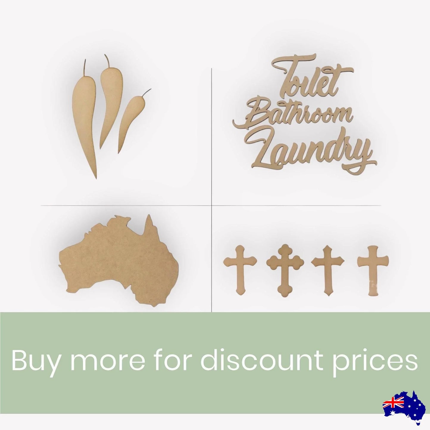 This MDF laser cut word offers endless creative possibilities! Laser cut in Australia by a Husband and Wife small business team, this raw cut-out features natural burnt edges and is perfect for leaving as is, or for painting or decorating to match your unique home décor. A versatile addition to any themed space, whether it be your home or business.