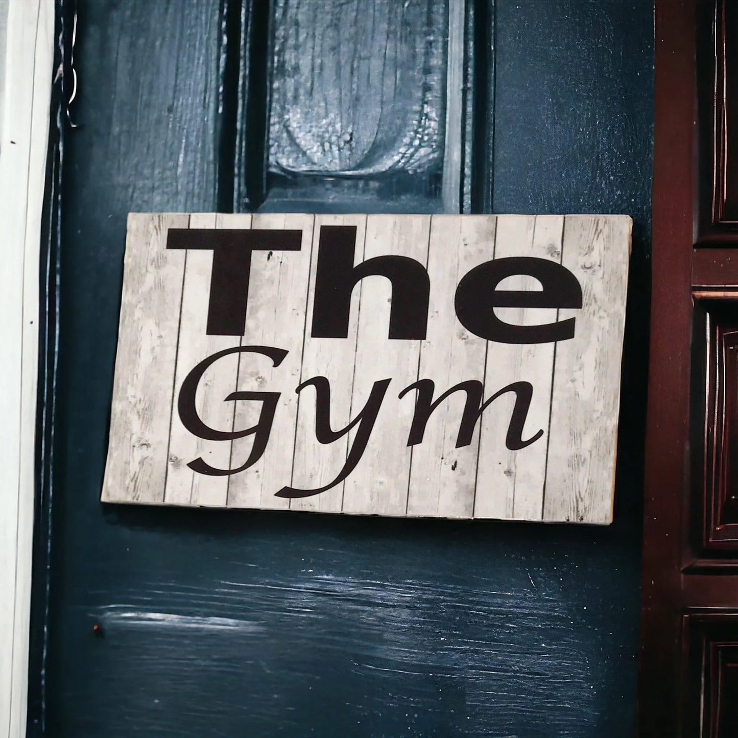 Transform your gym entrance or room into an inviting and motivating space with The Gym Door or Room Sign.