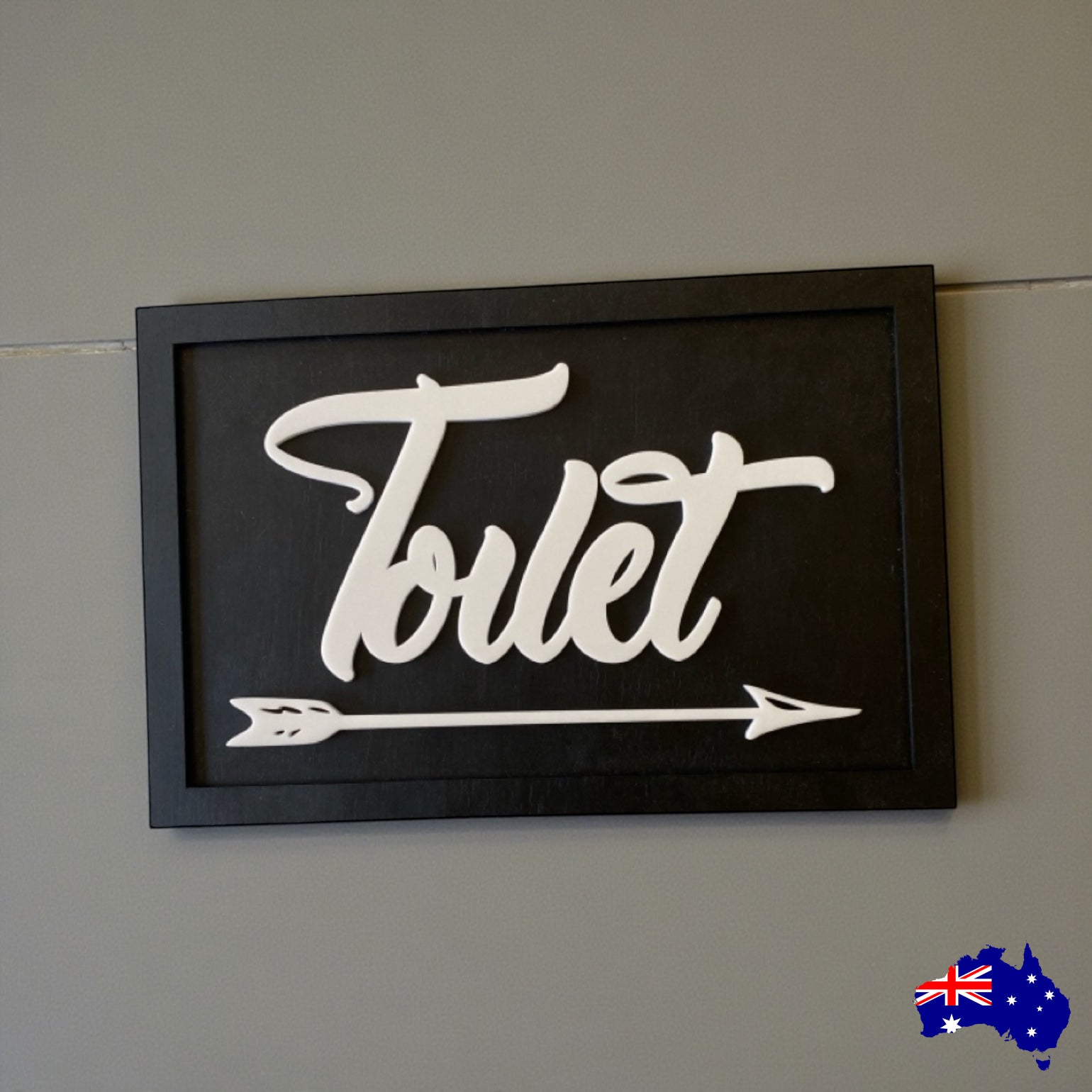Elevate your property or business with our Timber Wood Plywood Custom Personalised Sign with Toilet and an arrow. Expertly laser cut by a dedicated husband and wife duo from AA Grade Marine Plywood, this durable sign is ideal for both indoor and outdoor use. Featuring raised letters available in gold, silver, white, or a custom color of your choice, it offers a timeless, elegant look. Single sided or double sided making it perfect for walls, fences, or gates, it adds stylish charm to any setting—from rustic farmhouse country to coastal beach houses. Personalize it with your cottage or family name, house number, pet sign, or even as a unique bar or kitchen décor. Customize further with simple silhouette images and text to match your style perfectly.