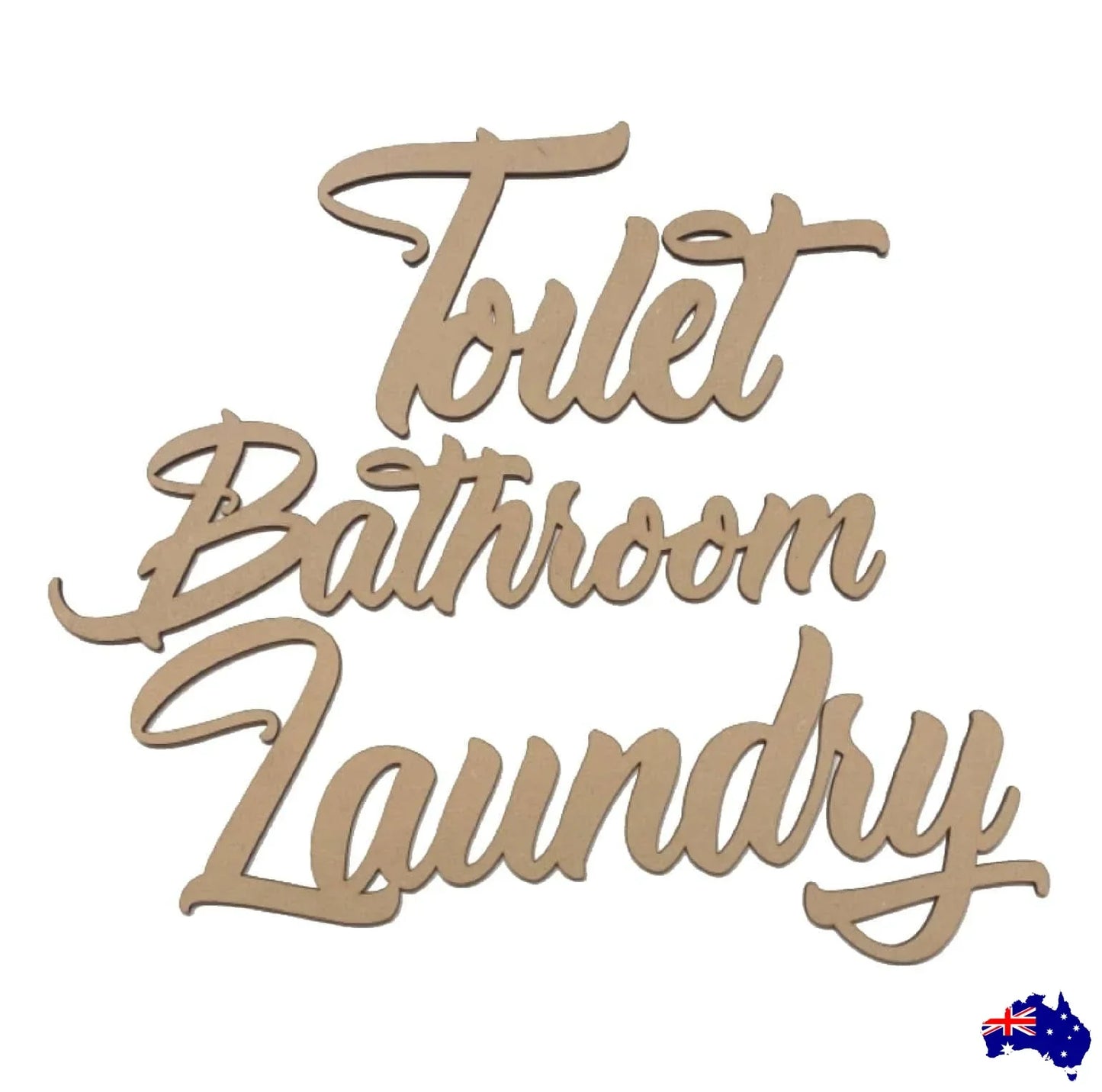Toilet Laundry Bathroom Door Sign Set MDF DIY Wooden
