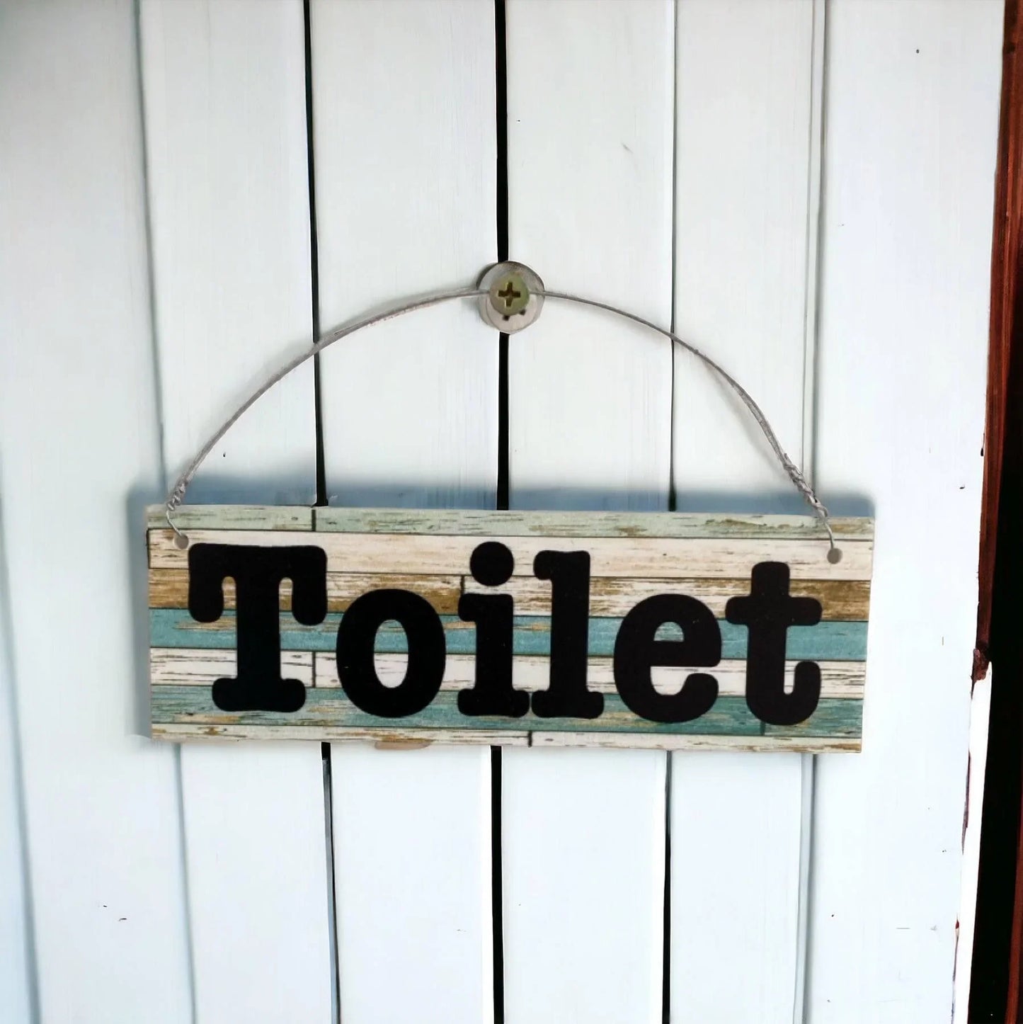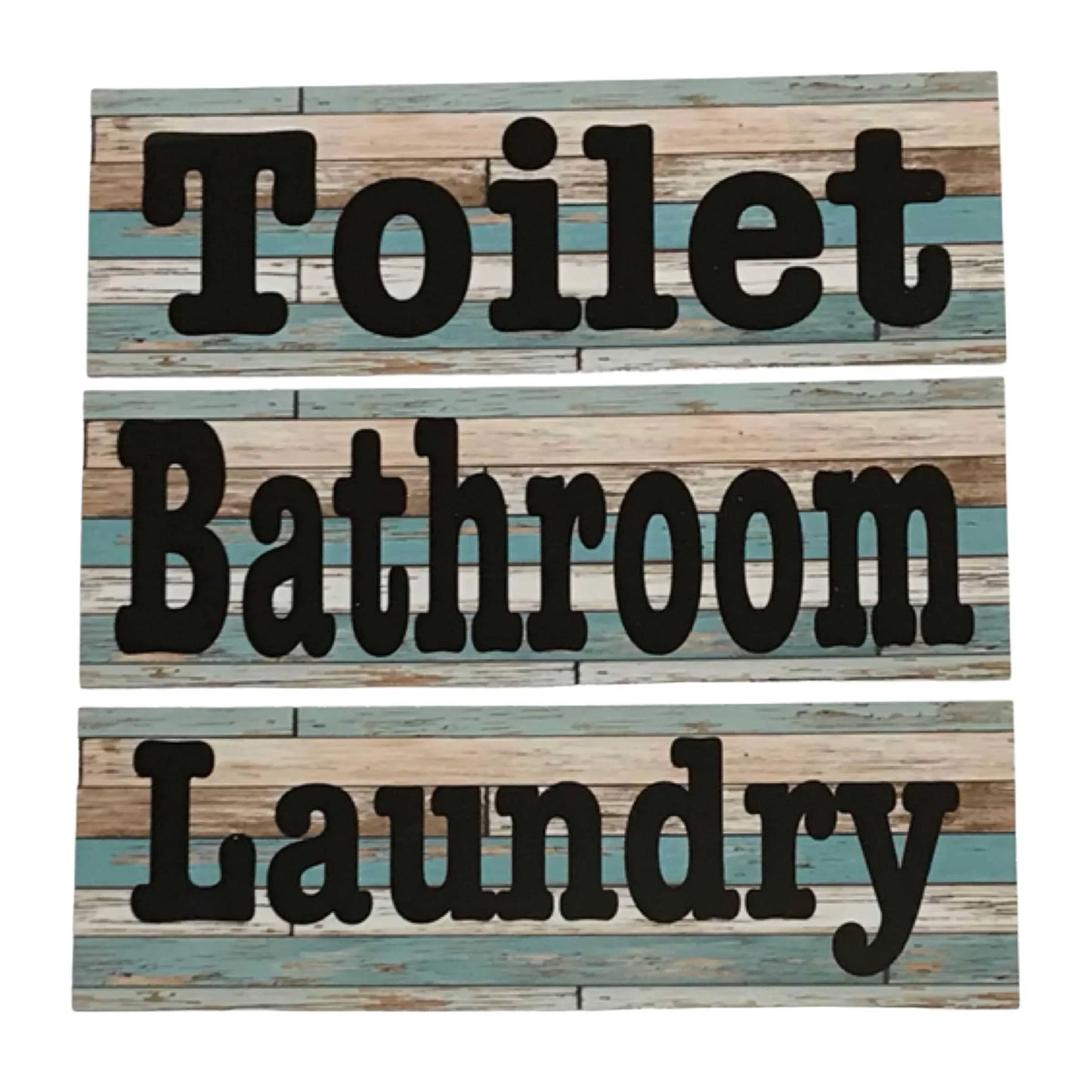 Elevate the aesthetic of any home or business with the rustic blue sign for toilet, laundry, and bathroom. Impress guests with its clear messaging and stylish design. Proudly display on your doors for easy navigation.