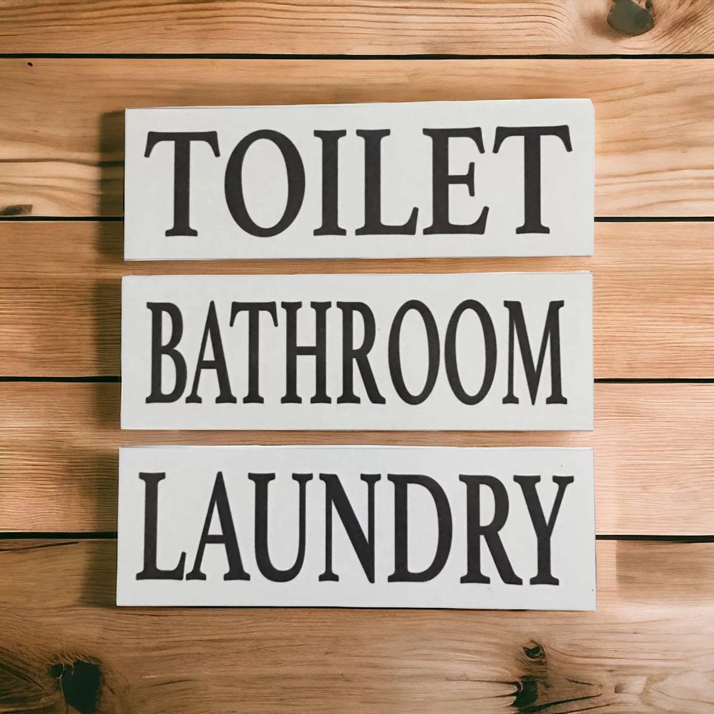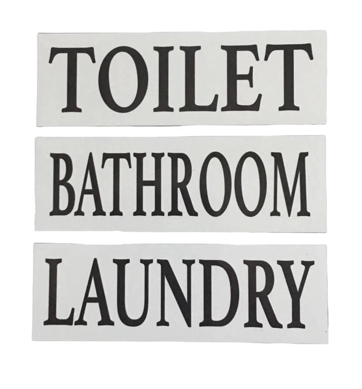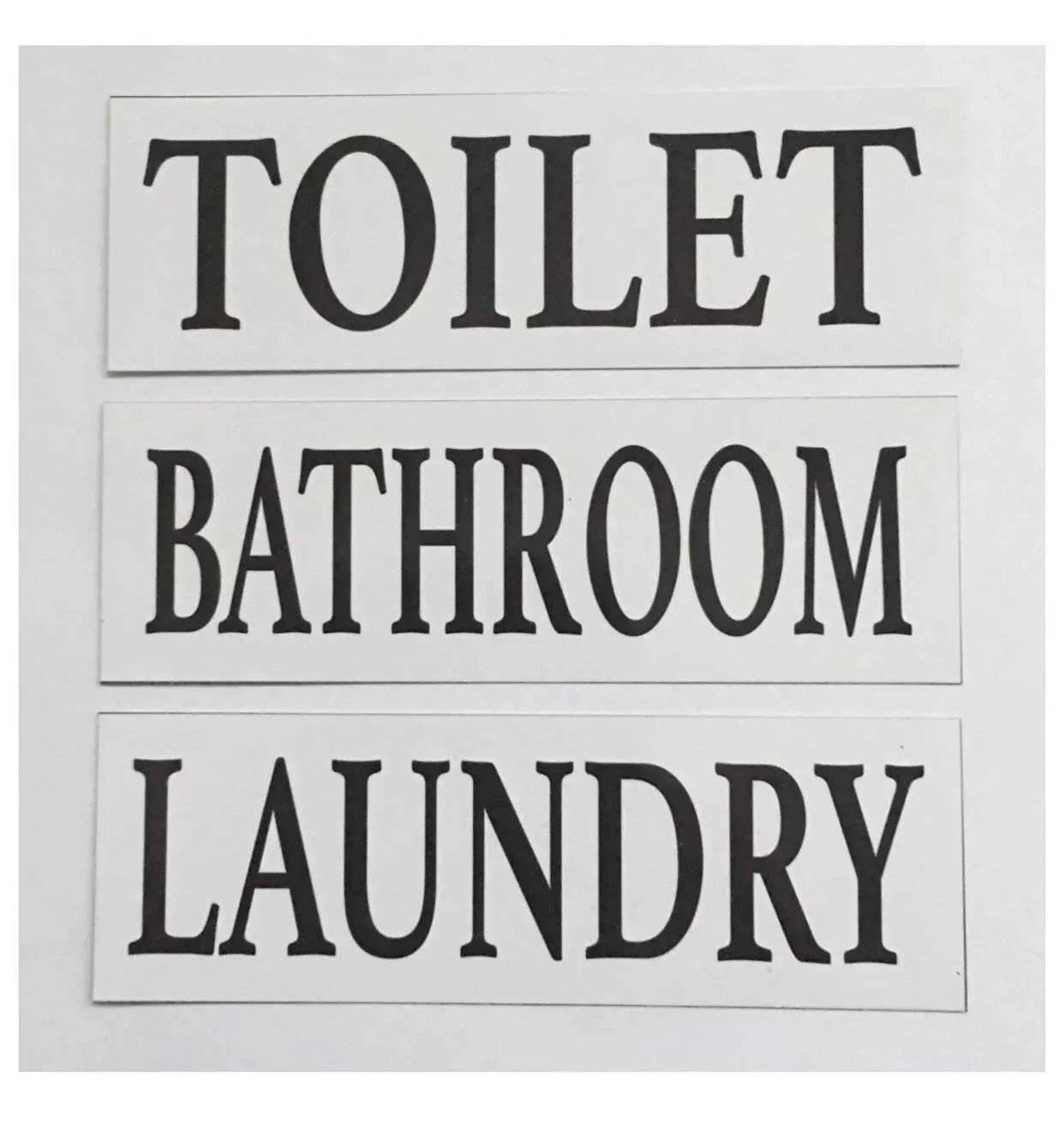 Make a statement with our Toilet Laundry Bathroom White Door Room Sign. This classic sign features black text on a clean white background, perfect for any home or business decor. Its elegant finish adds a touch of sophistication. Use it to inform visitors, customers, or guests of the location of your toilet, bathroom, and laundry. Designed for outdoor use, this sign is a versatile option for all your outdoor signage needs.