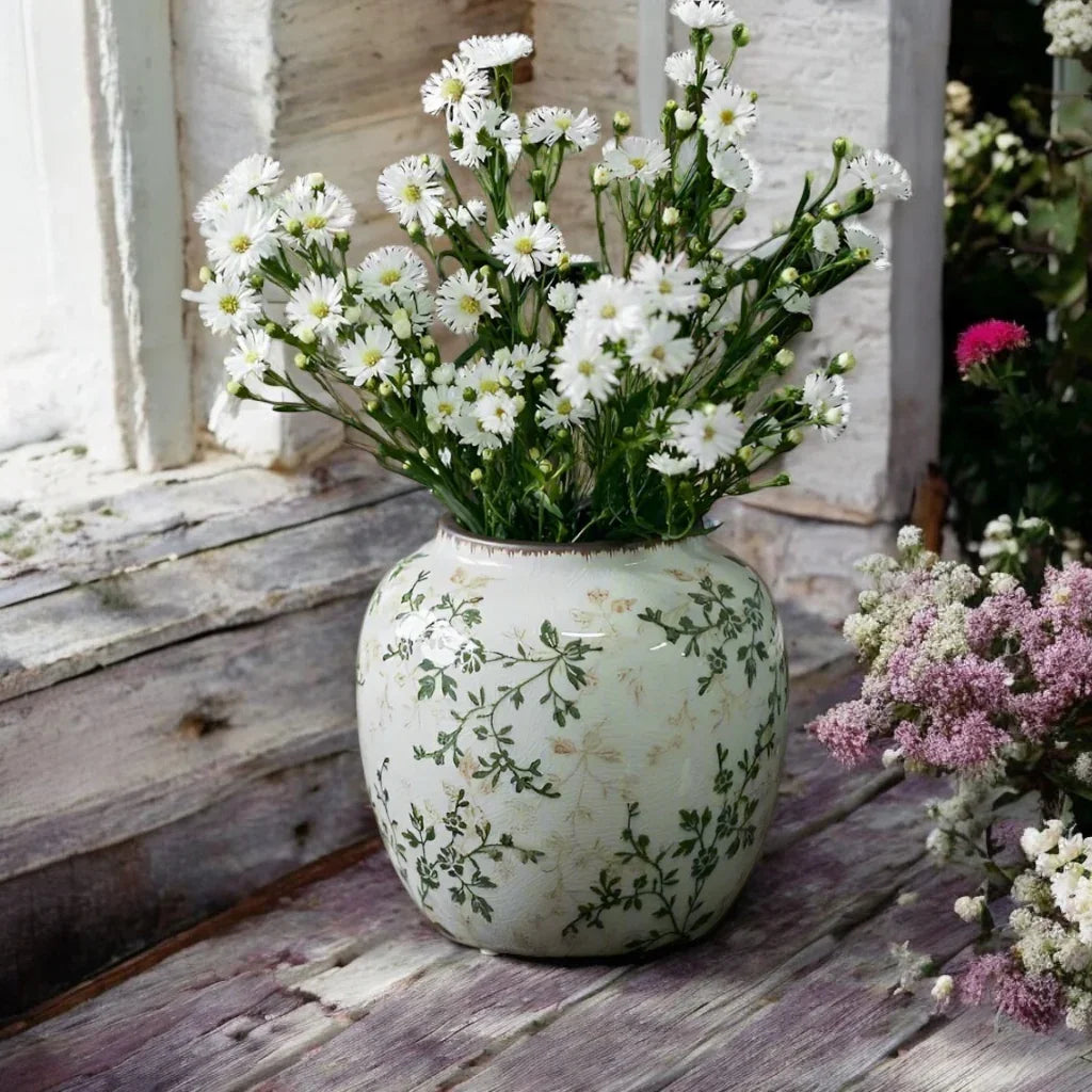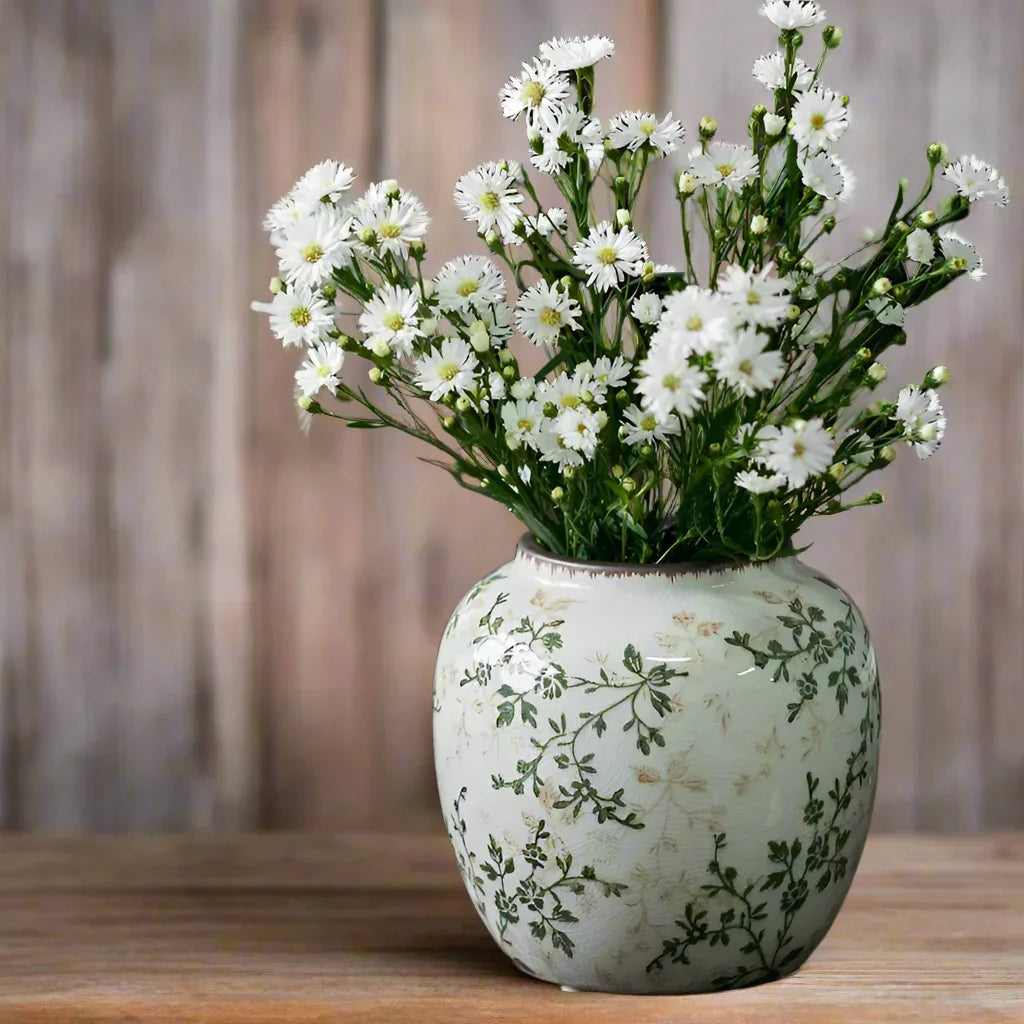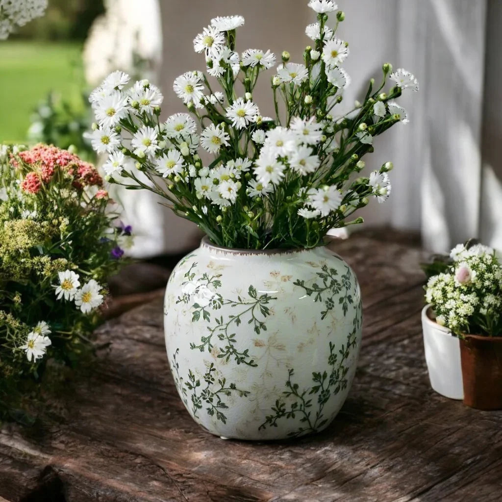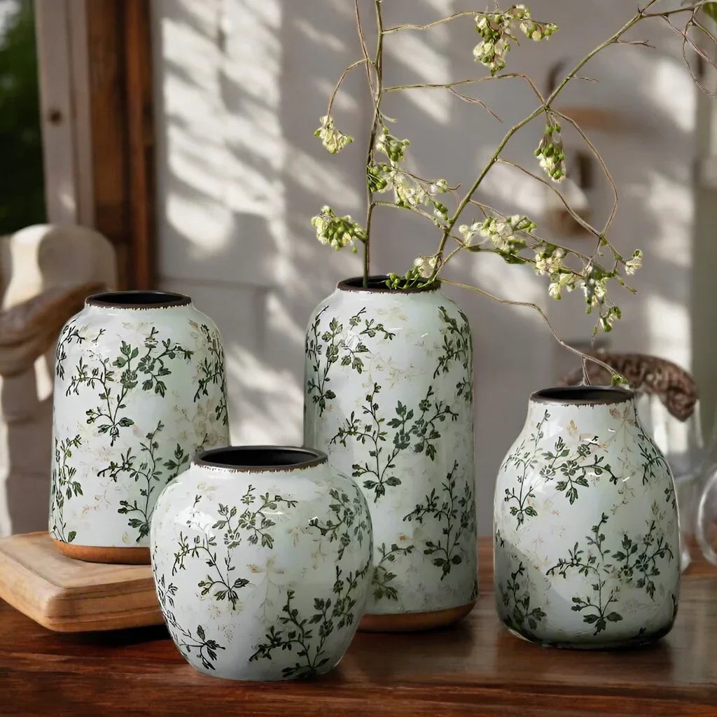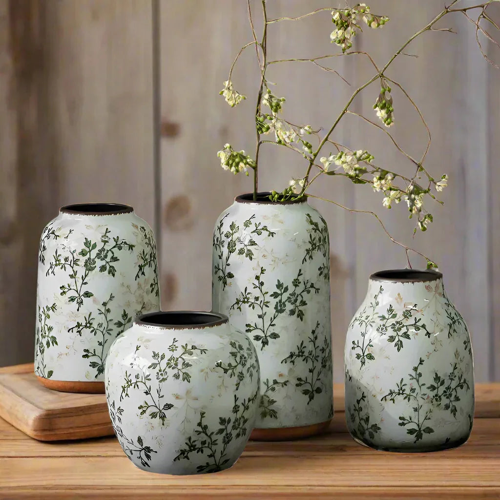 Introducing Vase Ceramic Leaf Rustic - a stunning collection of rustic finish vases that will elevate any home decor. Select from 4 unique designs or purchase them all to showcase your beloved flowers and plants indoors or outdoors! Bring a touch of style to your space with this beautiful addition. Sizes can be found in the photos