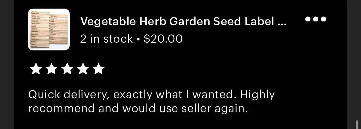 Vegetable Herb Garden Seed Label Marker Set of 40 Wood