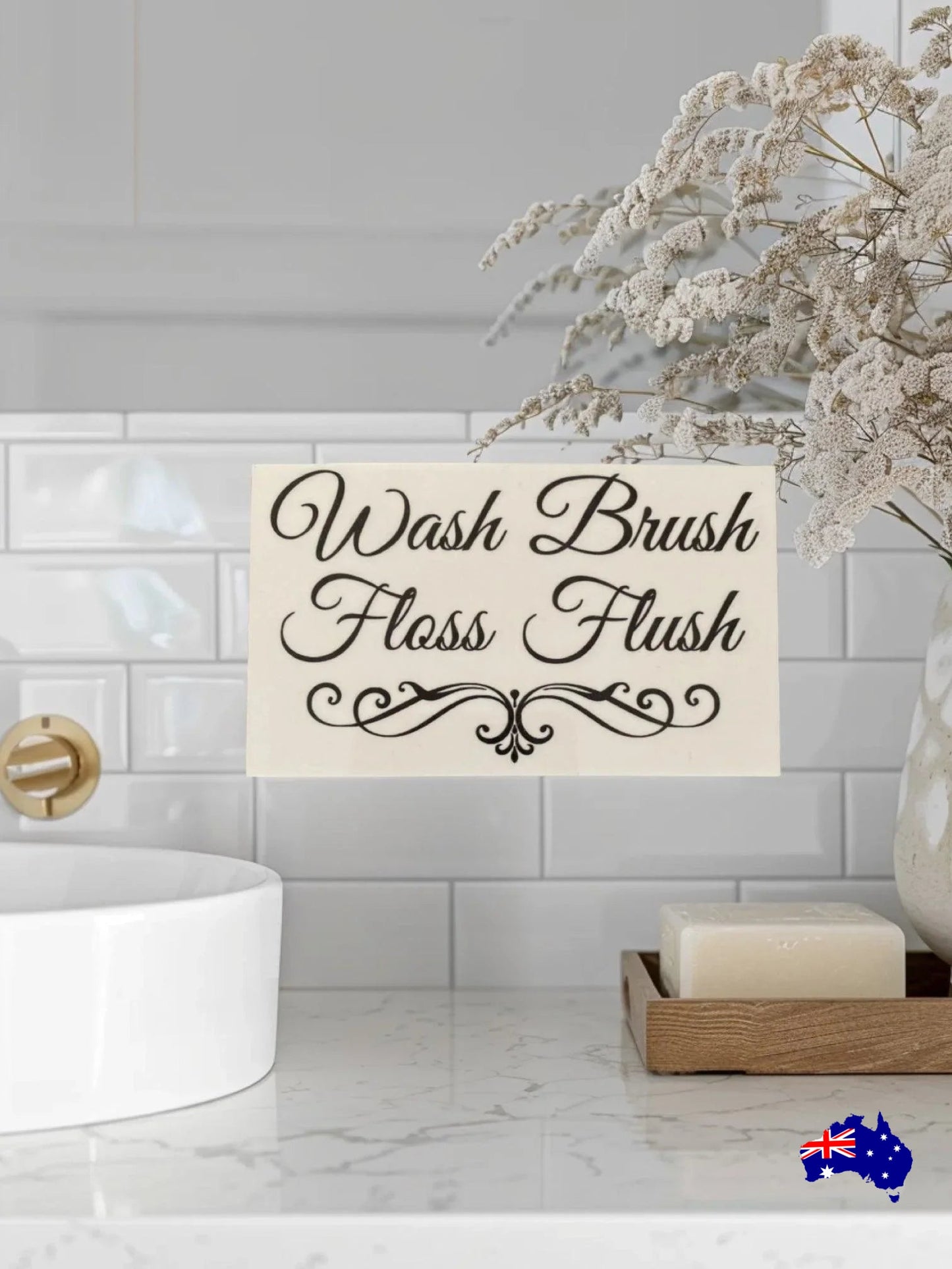 Wash Brush Floss Flush Bathroom Rules Sign