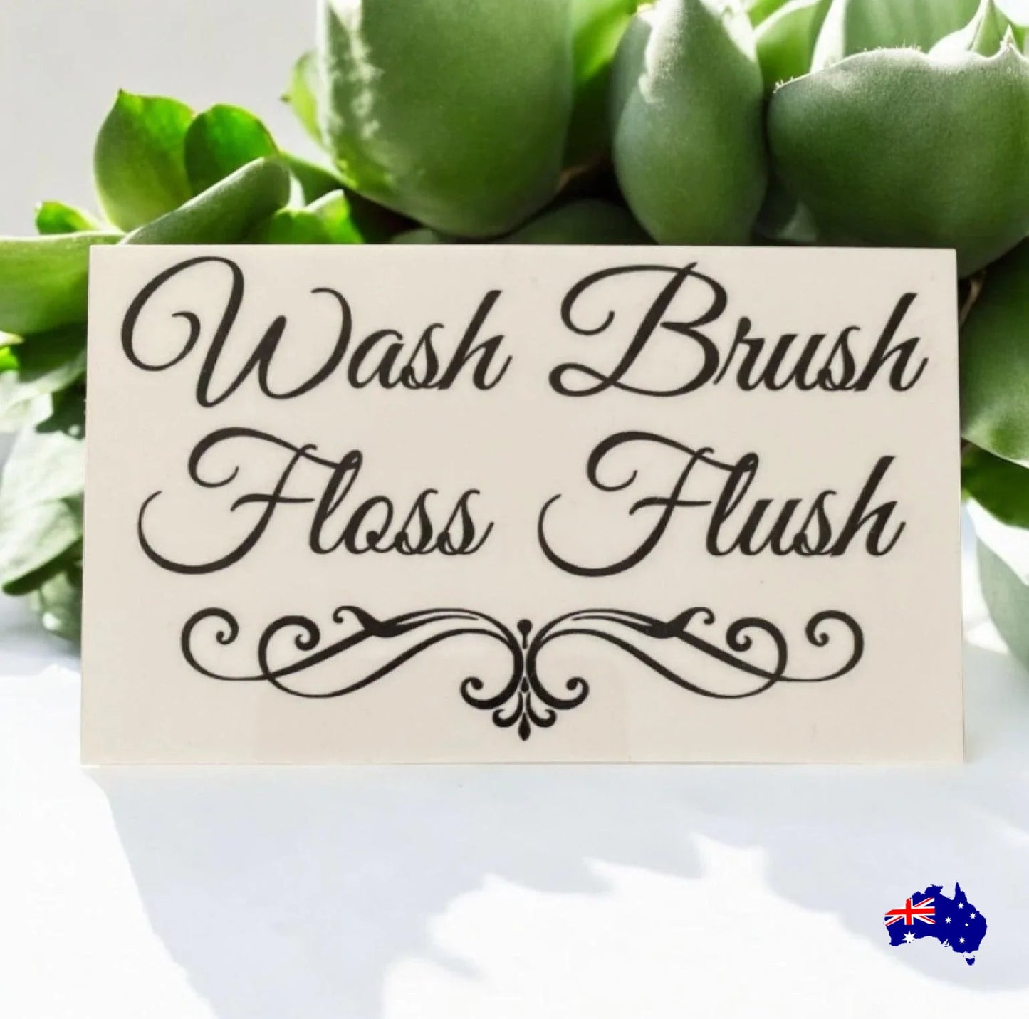 Don't forget to Wash Brush Floss Flush with this fun bathroom sign! It's perfect for reminding kids and adults to keep their teeth and hygiene in check. Hang it up and get ready for some laughs and minty fresh breath and bodies in your home!