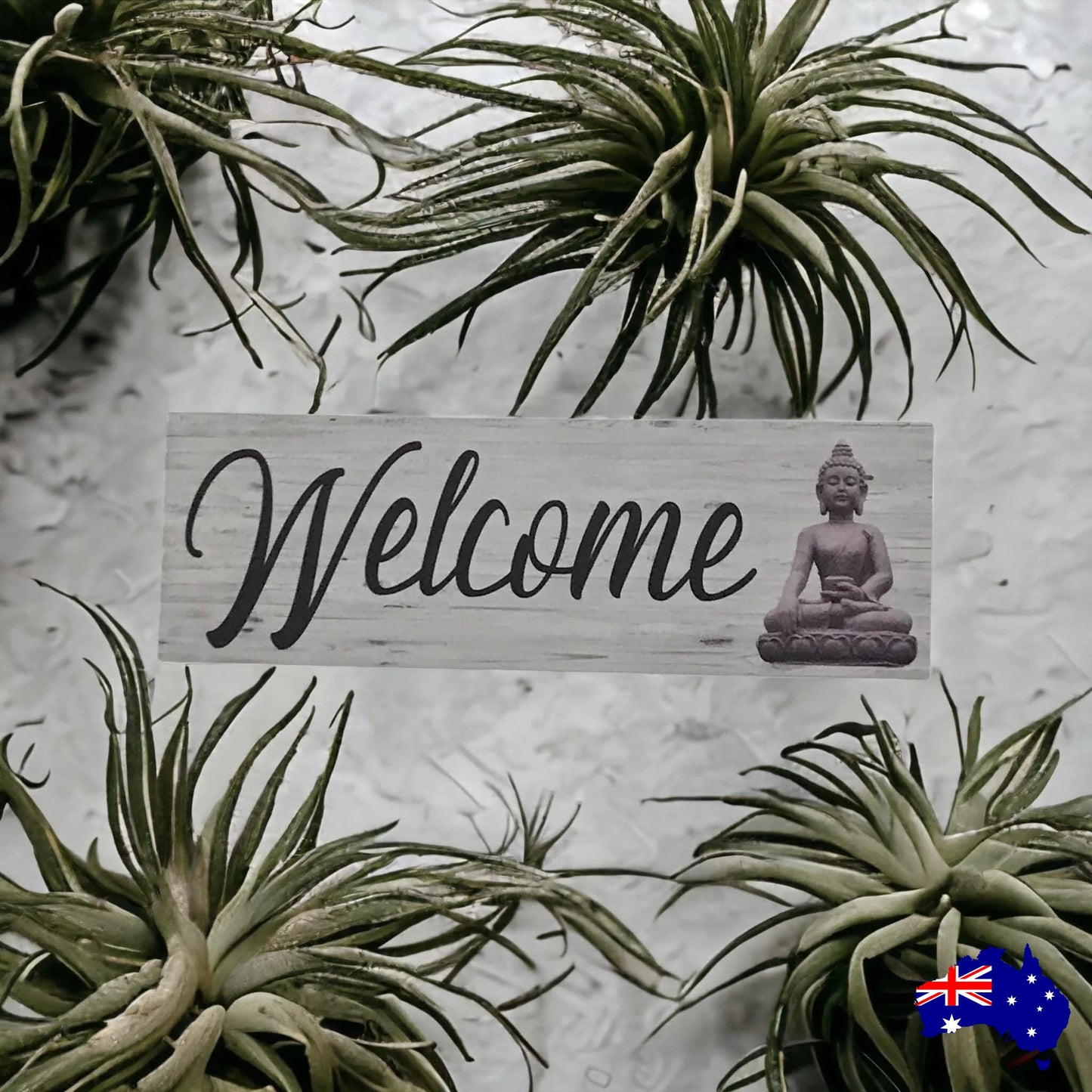 Transform your space with our Welcome Buddha Thai Tropical Zen Sign - perfect for both indoor and outdoor display to impress and welcome your guests!