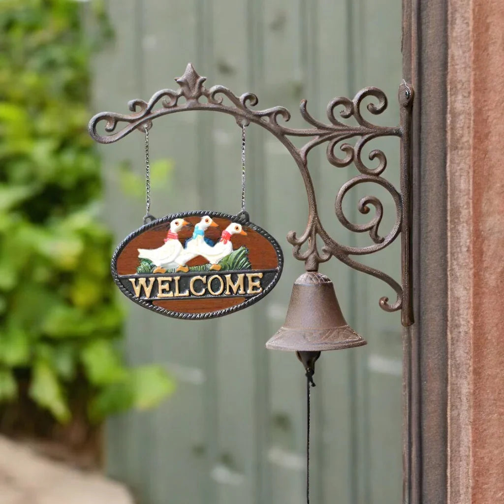 Welcome Doorbell Bell Cast Iron Entrance Duck Family