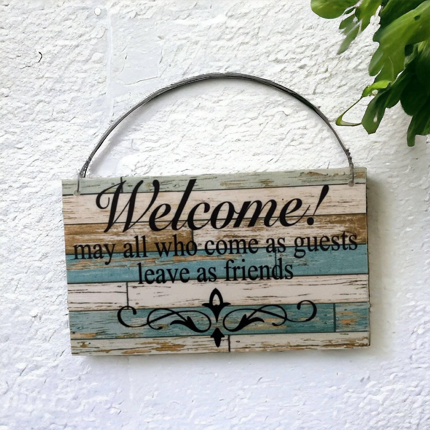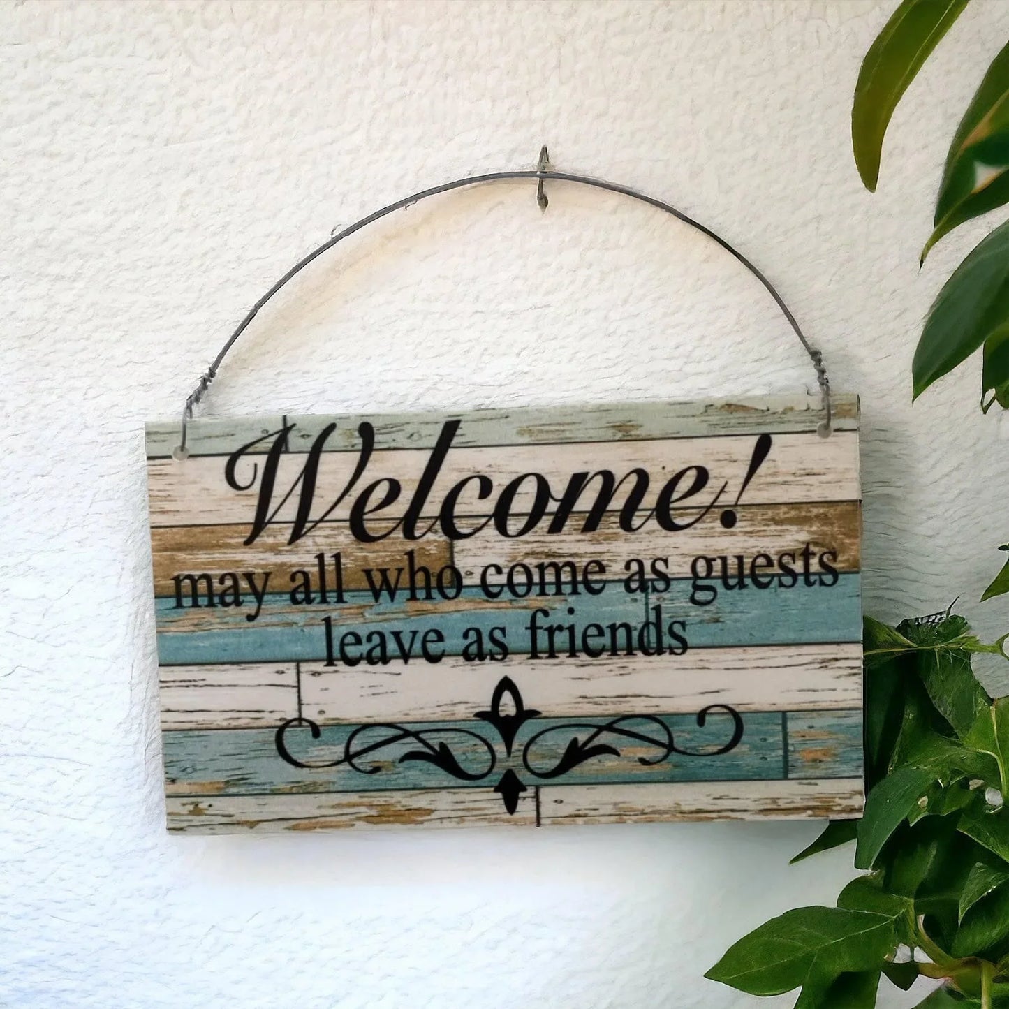 This limited edition Welcome Guests Leave As Friends Sign is perfect for hanging on a door, nail, or screw! It's a great addition to any home entrance or a thoughtful gift for a loved one. Only 2 of these unique signs are currently available.