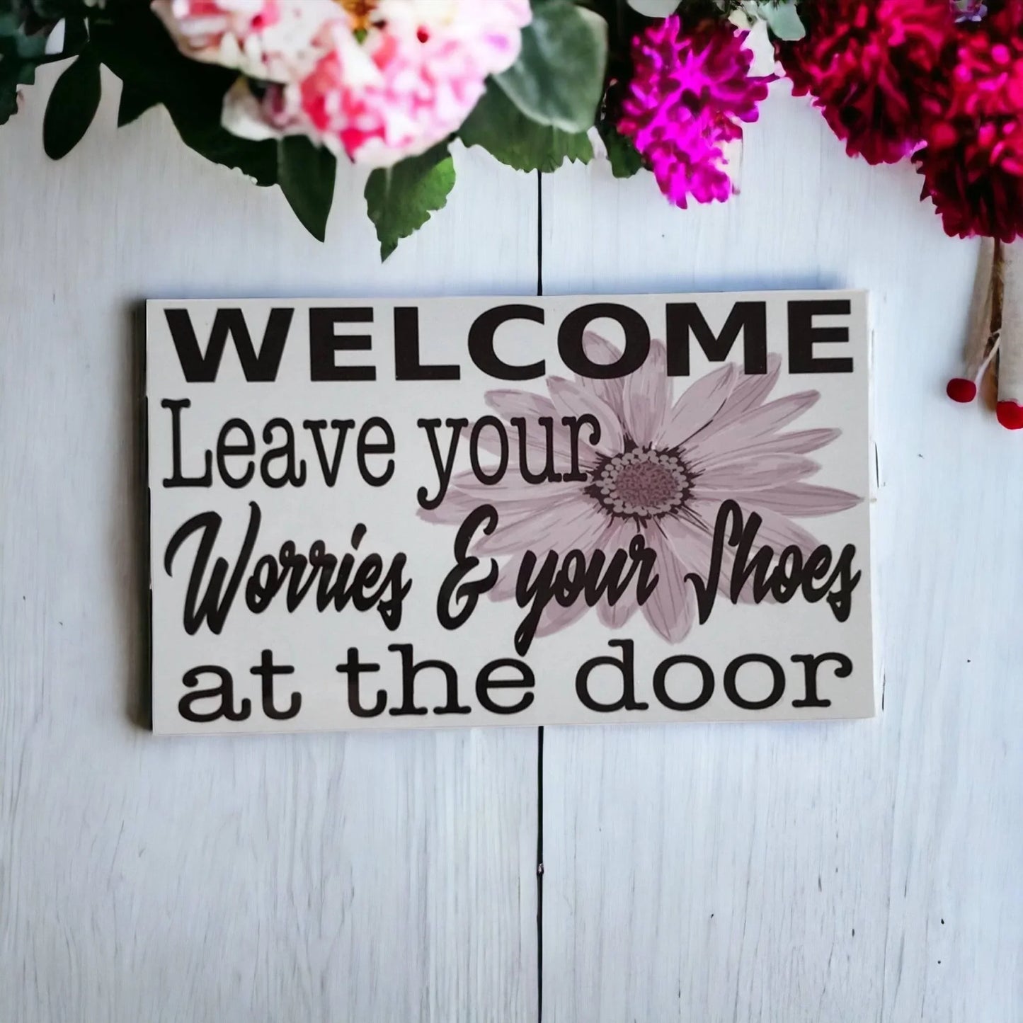 Treat yourself to a peaceful home with this Welcome Leave Your Worries & Your Shoes At The Door Sign! Enjoy the stress-free and cozy atmosphere that this stylish sign will bring to your entrance.