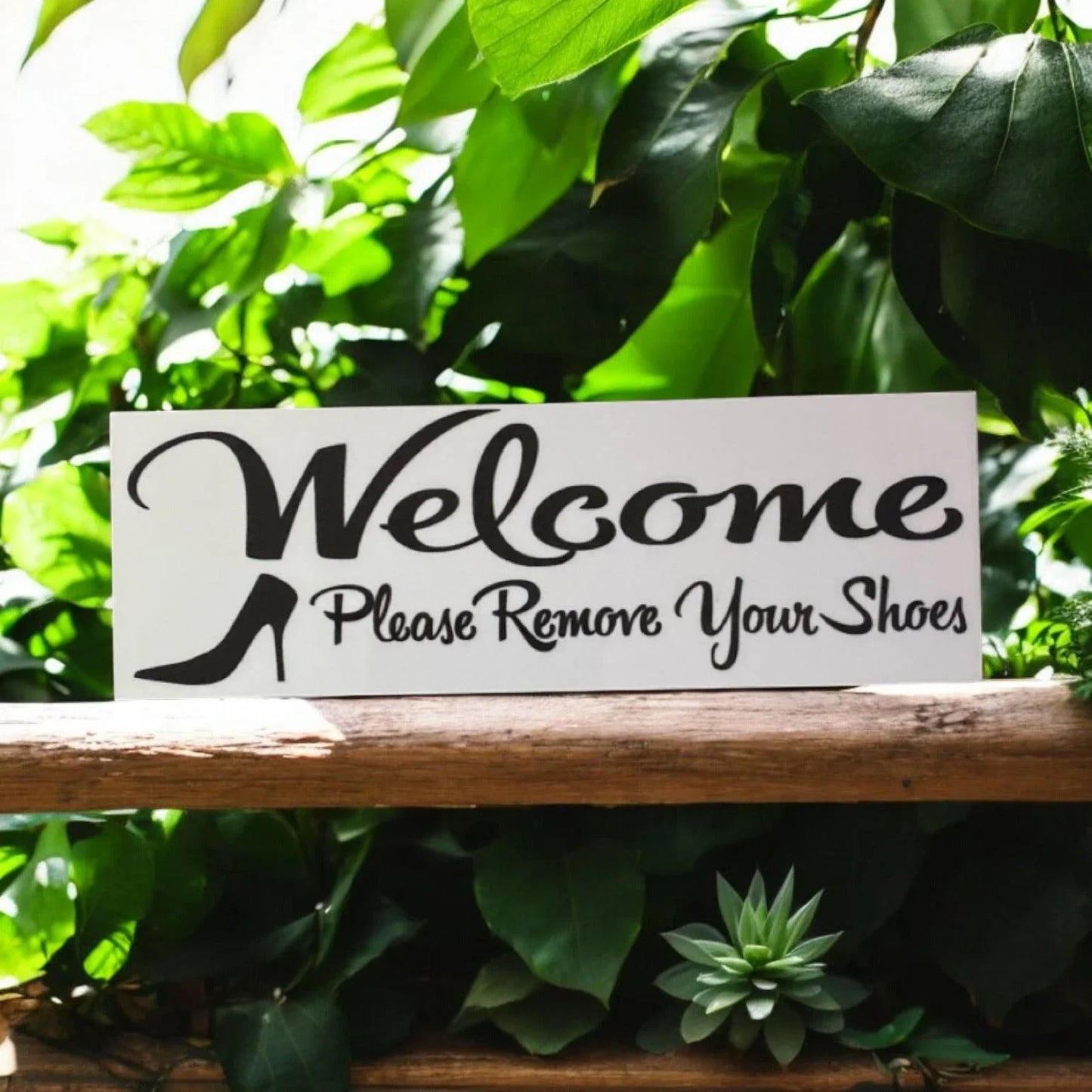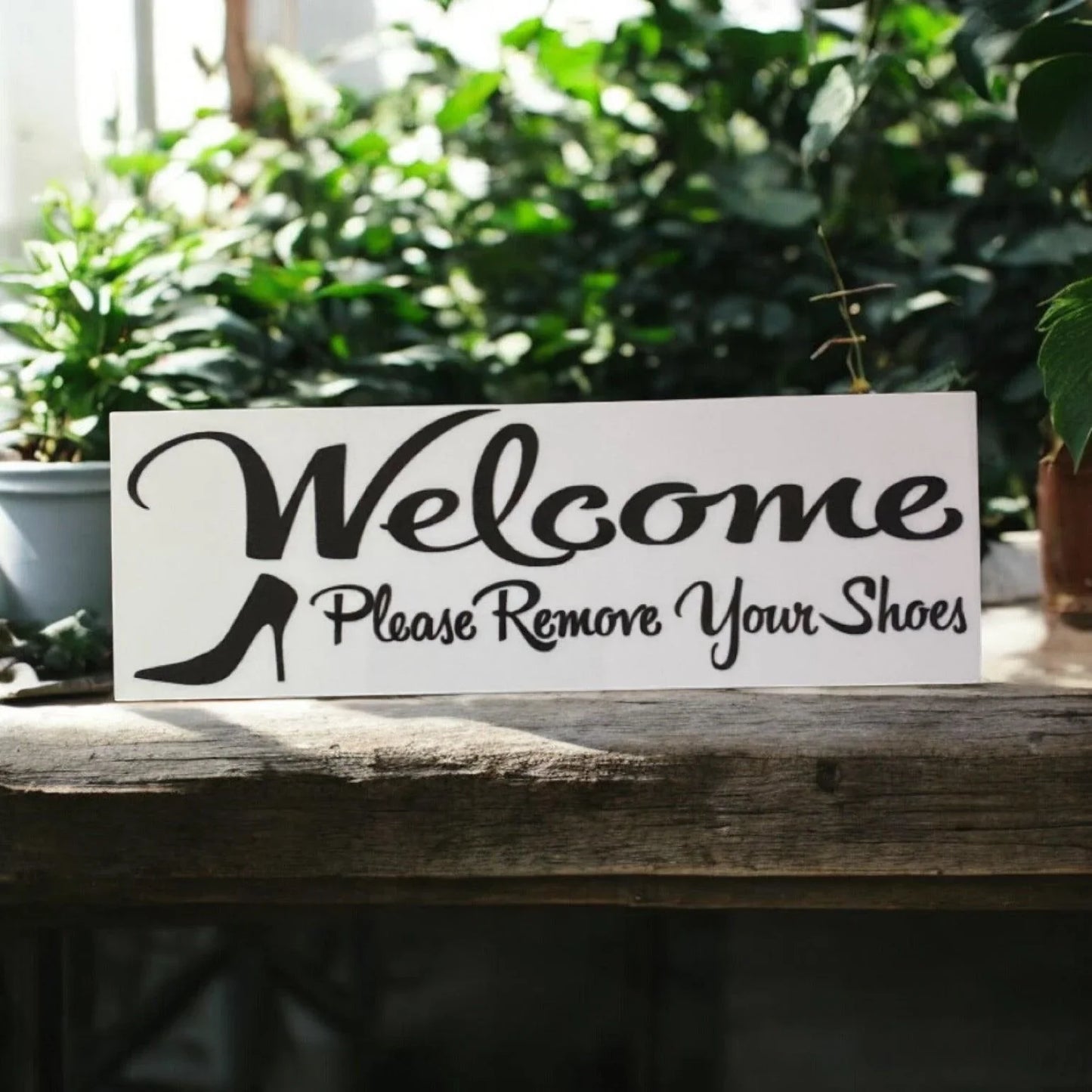 Invite guests to slip off their shoes and settle in with this charming entryway sign. Perfect for maintaining a clean, welcoming home, this thoughtful piece communicates your house rules with style and grace. Whether you're protecting your floors or simply prefer a shoe-free space, this sign makes the perfect addition to any hallway or entrance. A subtle yet effective way to set the tone for a relaxed, comfortable visit.