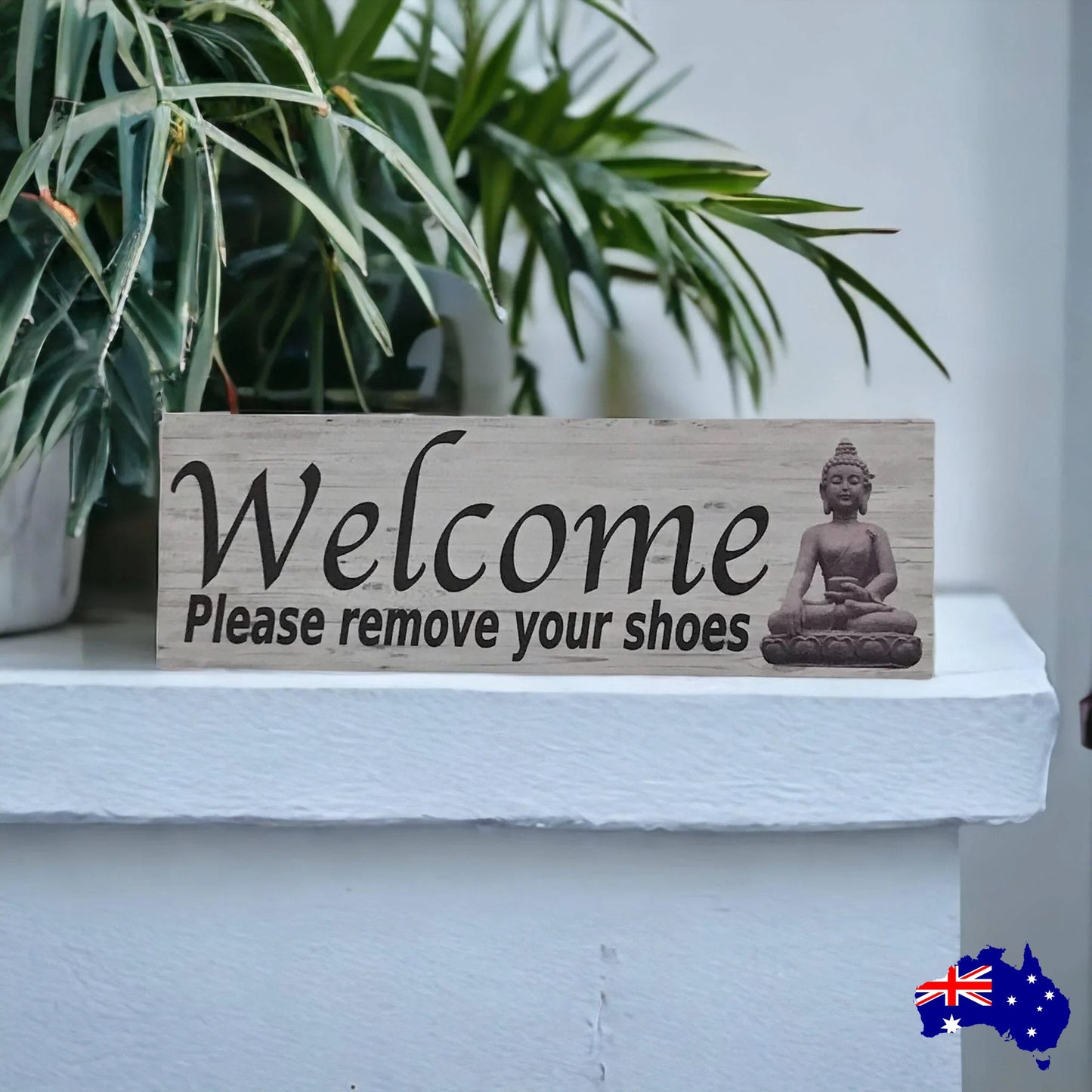 Welcome Remove Shoes Thai Buddha Zen Entrance Sign