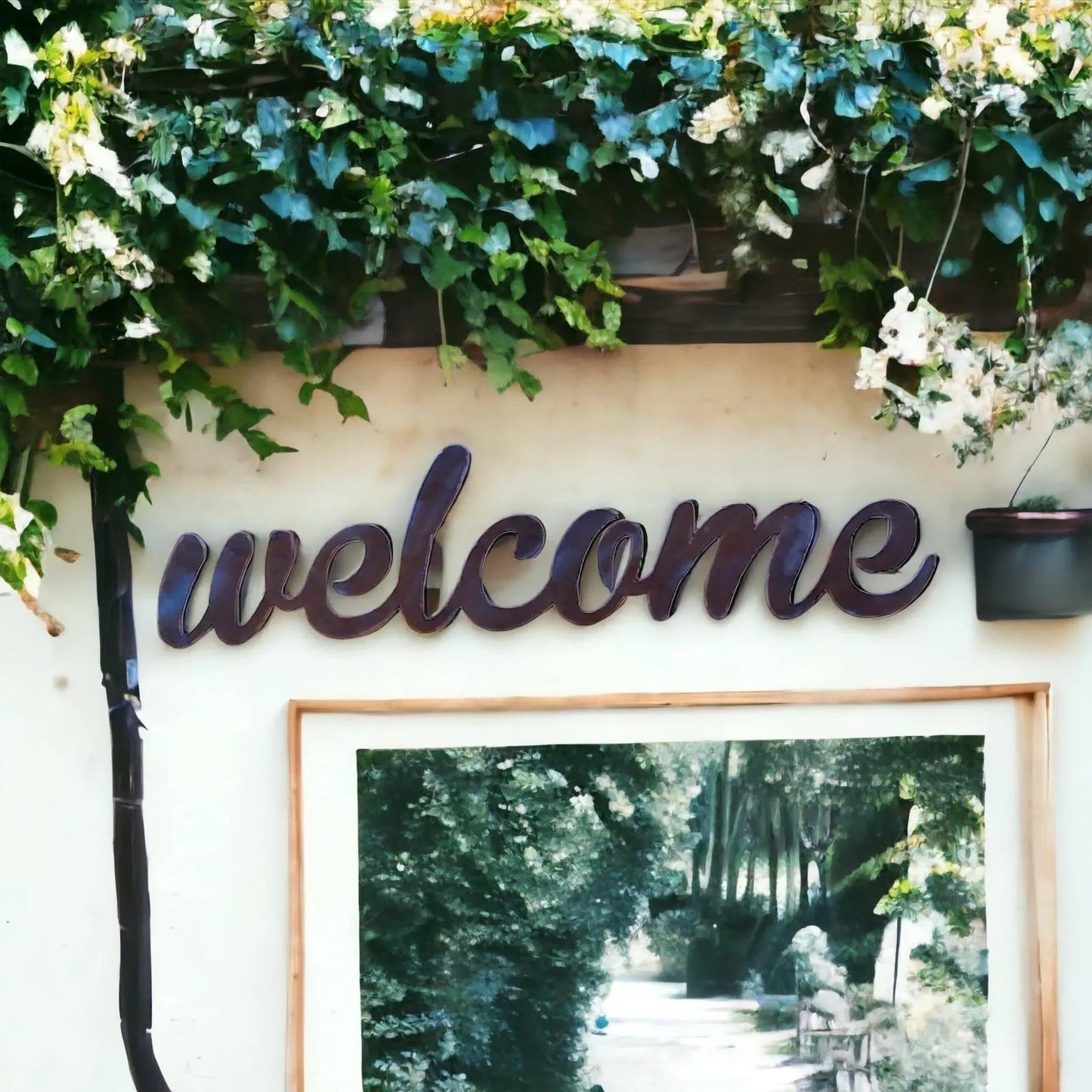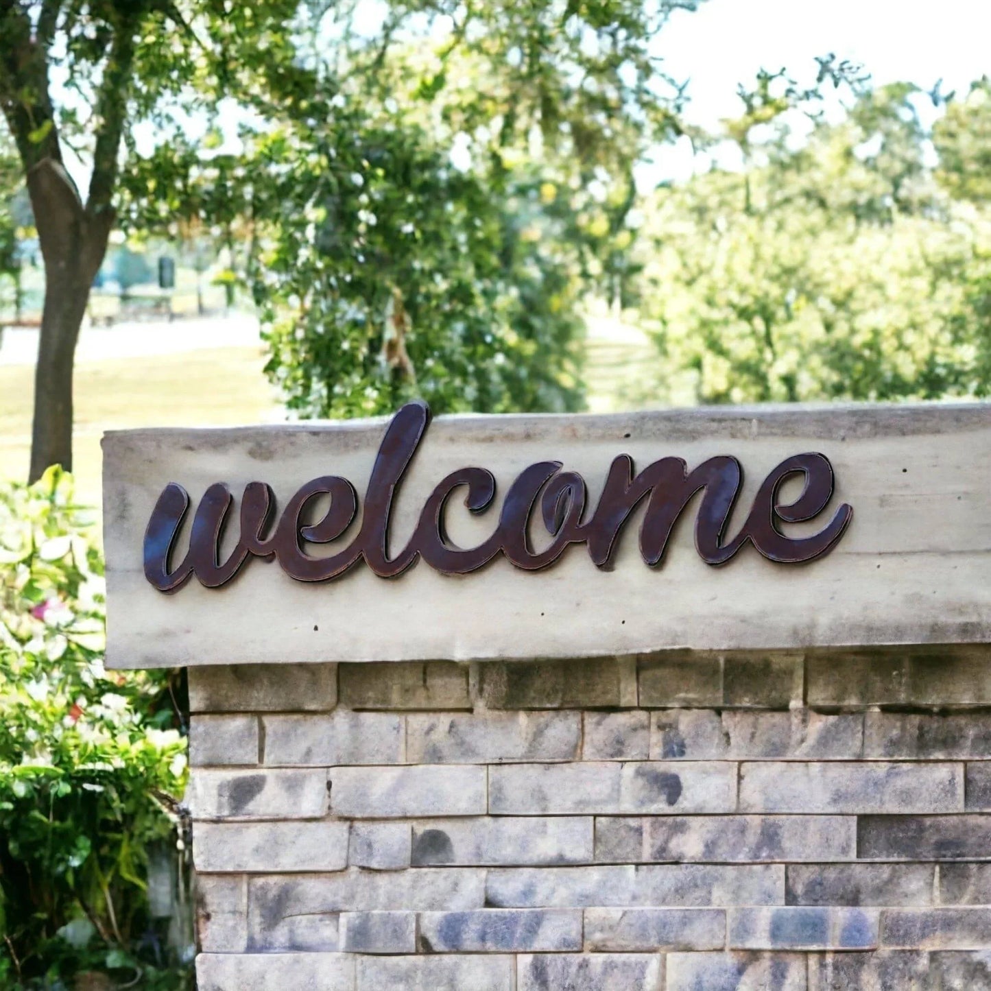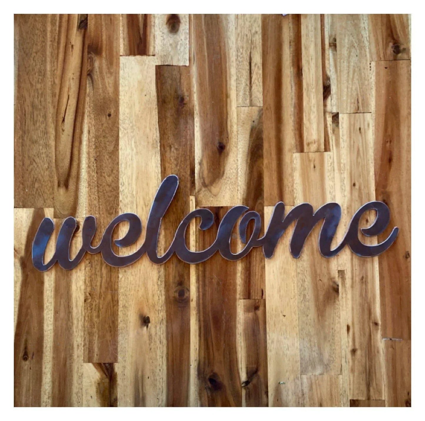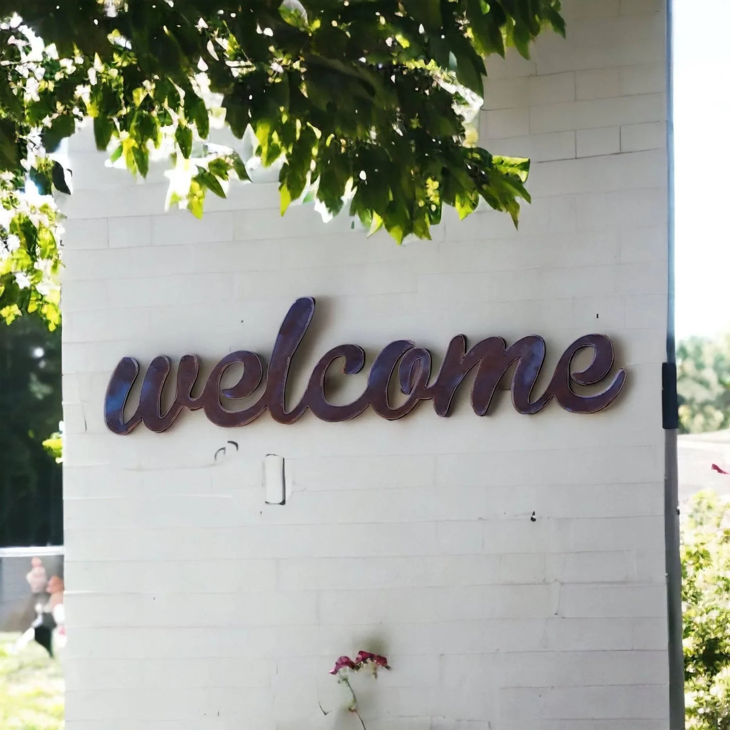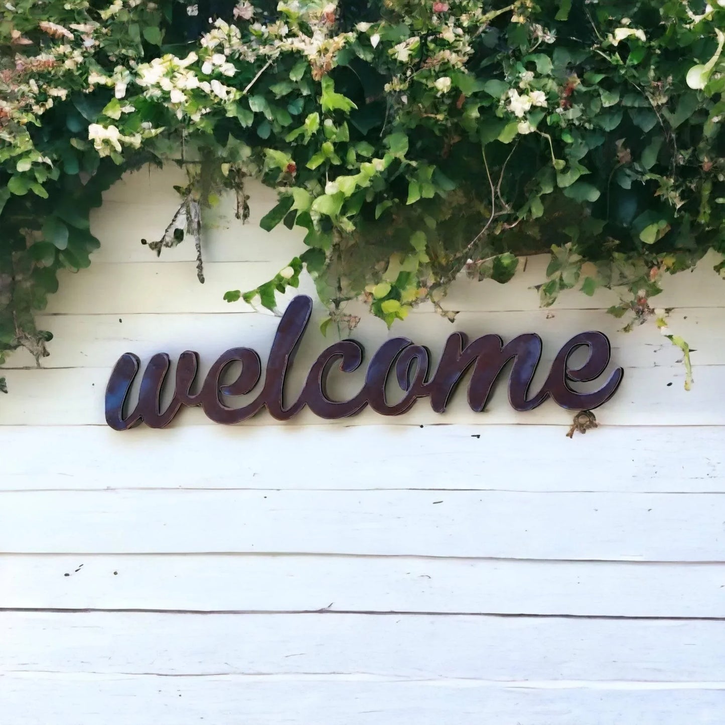 Add a welcoming touch to your home or garden décor with this Welcome Sign crafted and designed by a husband-and-wife team in Australia. Its rustic finish will gain richness and loads of unique weathered character over time, requiring no maintenance giving you a piece to last years to come. You may also choose to paint it yourself using any paints suitable for metal available from your local hardware store.