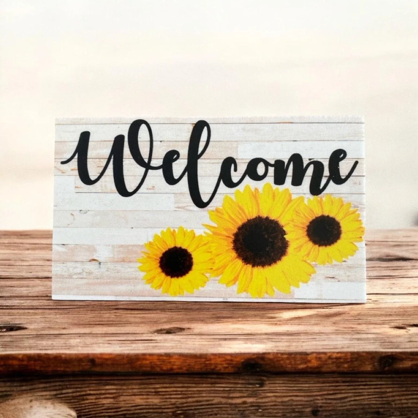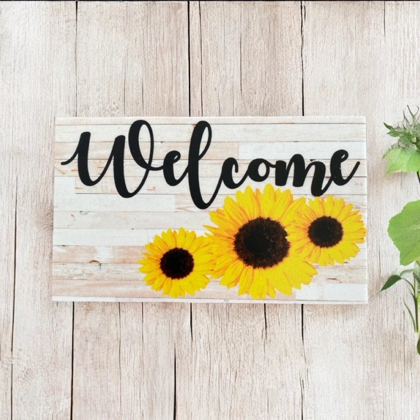 Welcome guests to your home with our charming Sunflower Country Sign! This beautiful sign features a bright sunflower design and the word "Welcome" in a rustic font. Hang it on your front porch or in your entryway for a warm and inviting touch. A must-have for any country home!