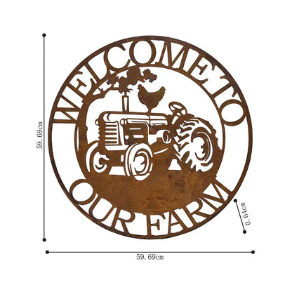 Transform your home into a warm and inviting space with the Welcome to our Farm Round Laser-Cut 60cm Wall Art. Crafted from premium iron and adorned with the words "Welcome to our Farm" in a graceful font, this stunning piece is the perfect addition to any country farm aesthetic. Its rust coating ensures longevity and adds a touch of rustic appeal. Measuring 60cm in diameter, it comes equipped with a convenient hook for effortless hanging. Share your love for the farm and elevate your home decor with this one-of-a-kind wall art.