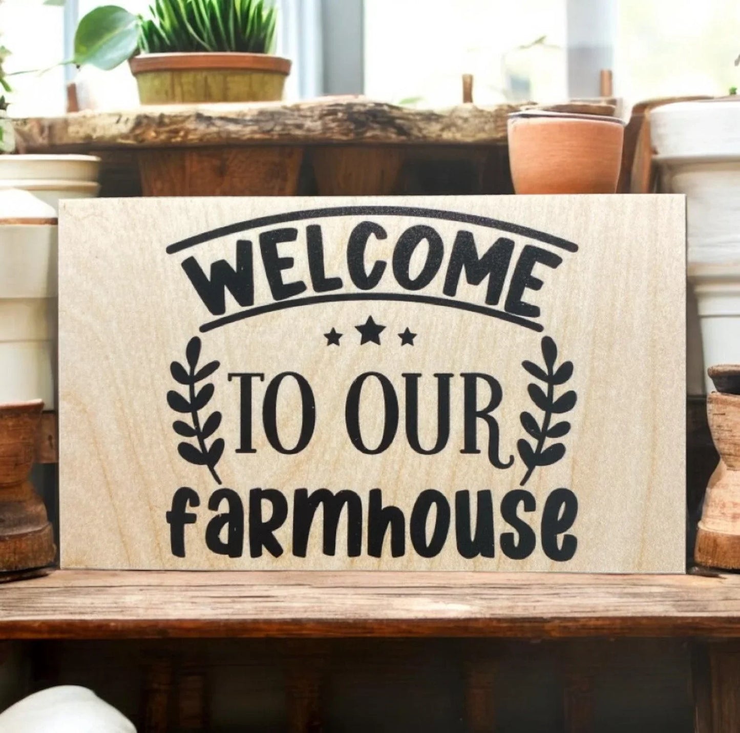 Add a touch of country charm to your farm or home with our Welcome To Our Farmhouse Sign. It's perfect for displaying on a wall, door, or shelf.