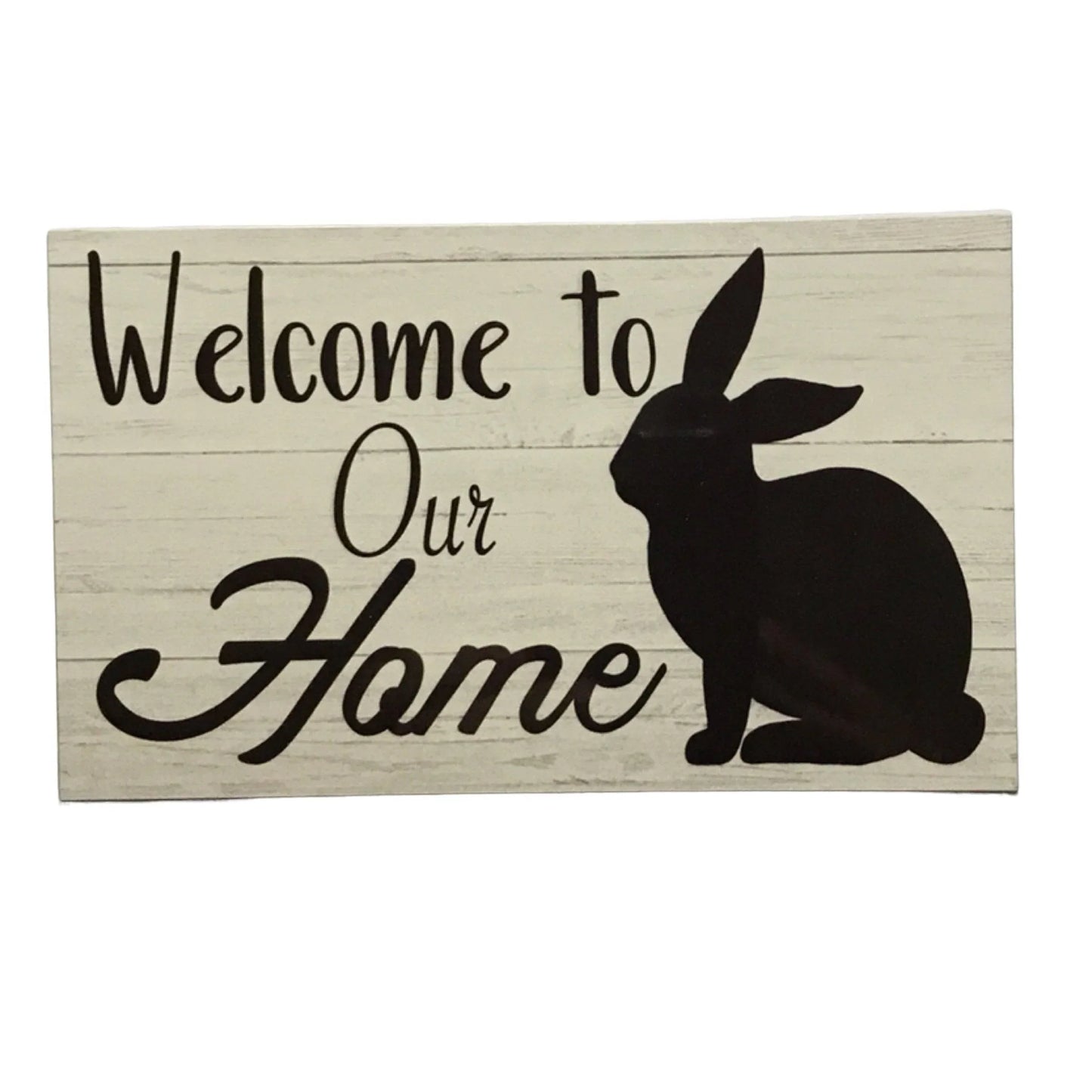 Transform your home into a cozy haven for bunny lovers with our Welcome To Our Home Rabbit Sign!