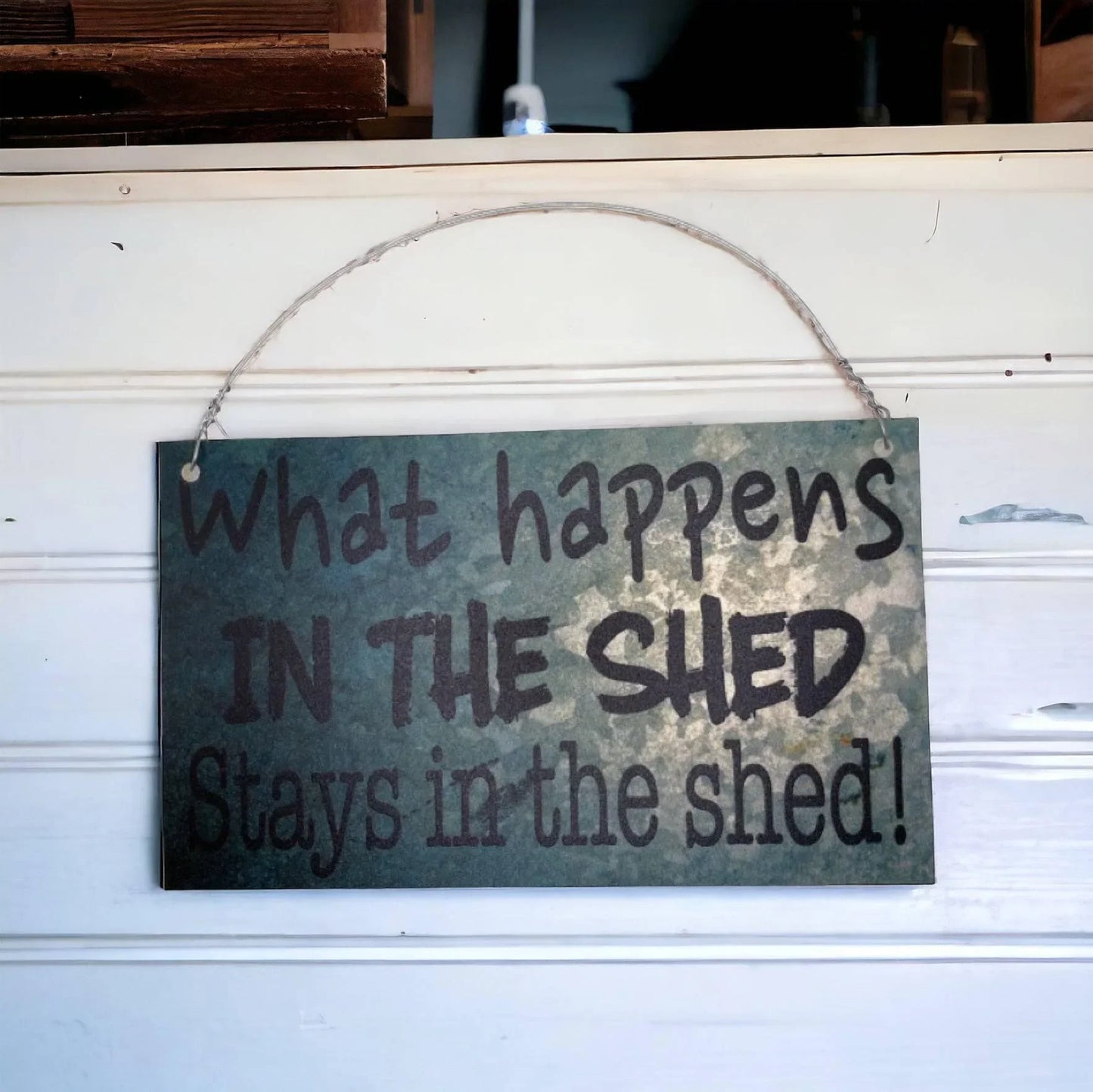 Hanging Sign comes with metal wire ready to hang off any nail, screw ect. (Wire is attached to each corner at the top)