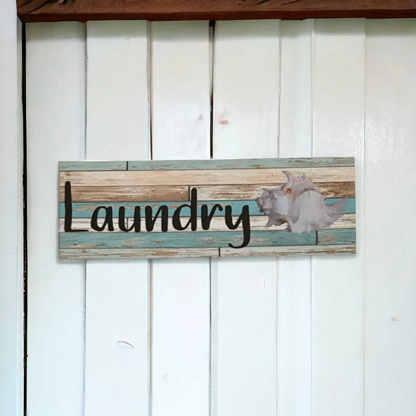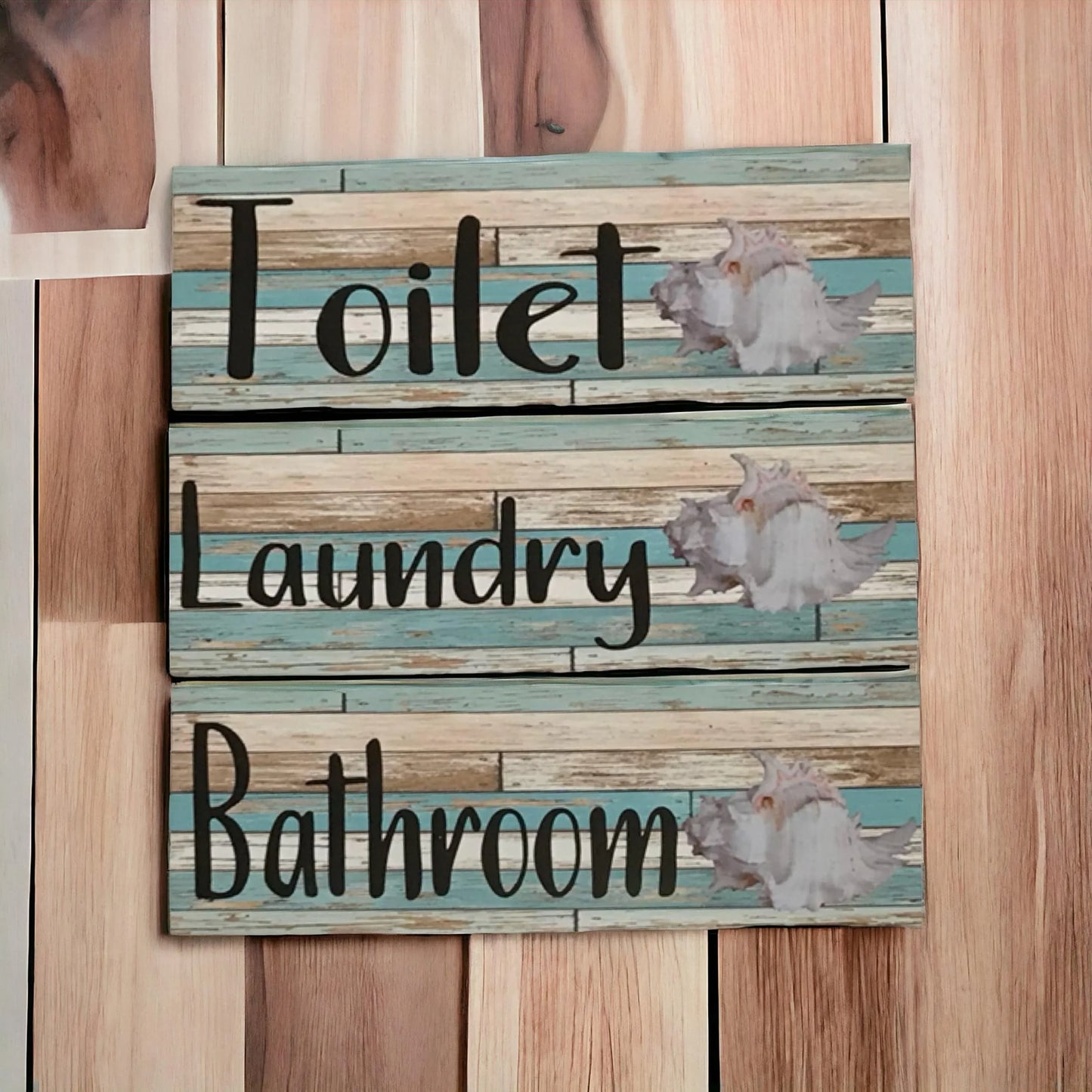 White Shell Mint Rustic Sign Toilet Laundry Bathroom