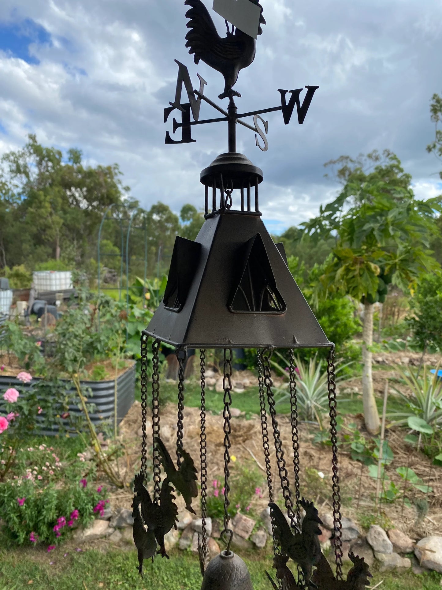 This Wind Chime Bell Rooster also comes with a decorative weathervane. Hand made from cast iron and metal, it stands at approximately 85cm tall and is a beautiful addition to any indoor or outdoor space. A must-have for chicken and rooster enthusiasts!