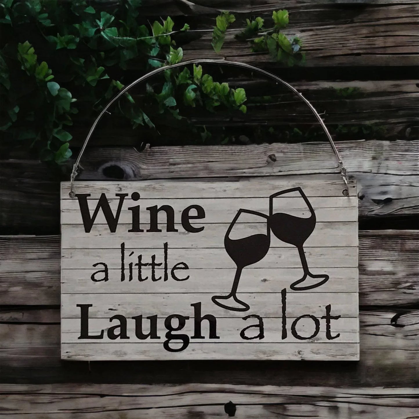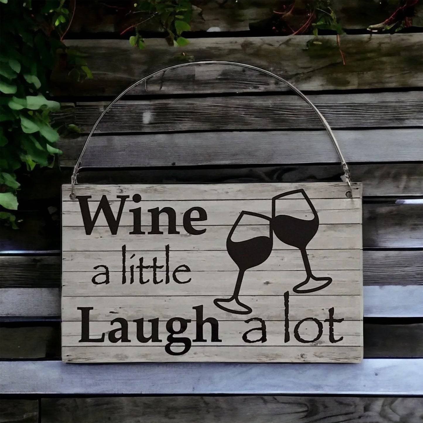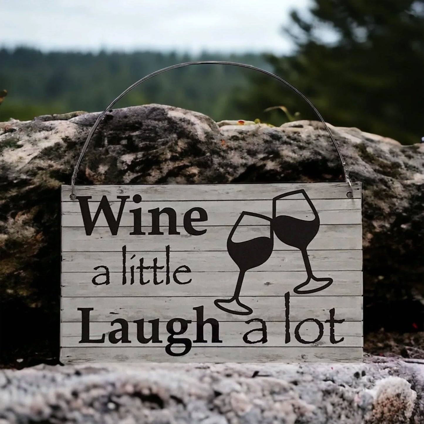 Wine A Little Laugh A Lot White Wash Rustic Sign